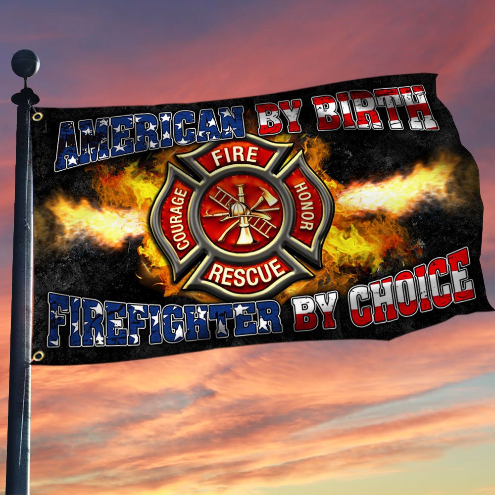 Firefighter Grommet Flag, American By Birth Firefighter By Choice QNK232GFCT