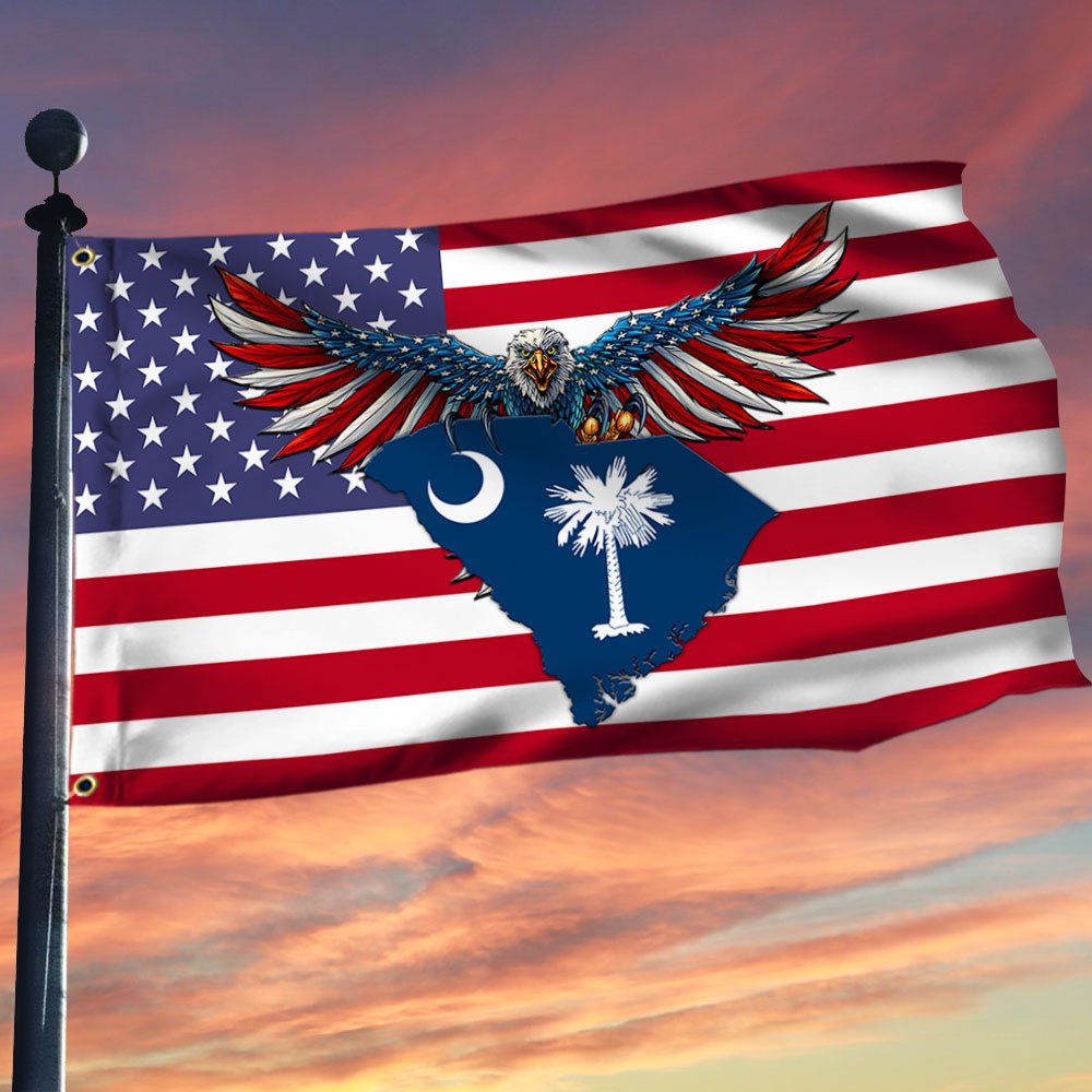 South Carolina Eagle Flag American South Carolina Map 3-Layer Heavy Grommet Flag SCEGLECL
