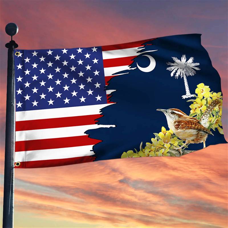 South Carolina American Grommet Flag Carolina Wren with Yellow Jessamine BNN612GFCT