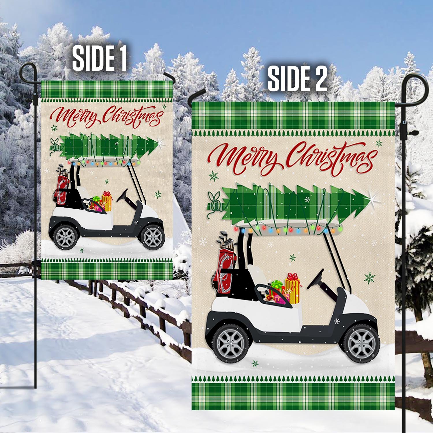 Christmas Golf Cart Garden Flag & Mailbox Cover HohoHole LNT64M1FCT