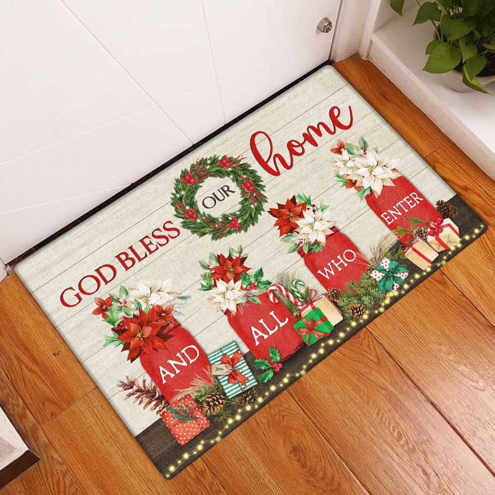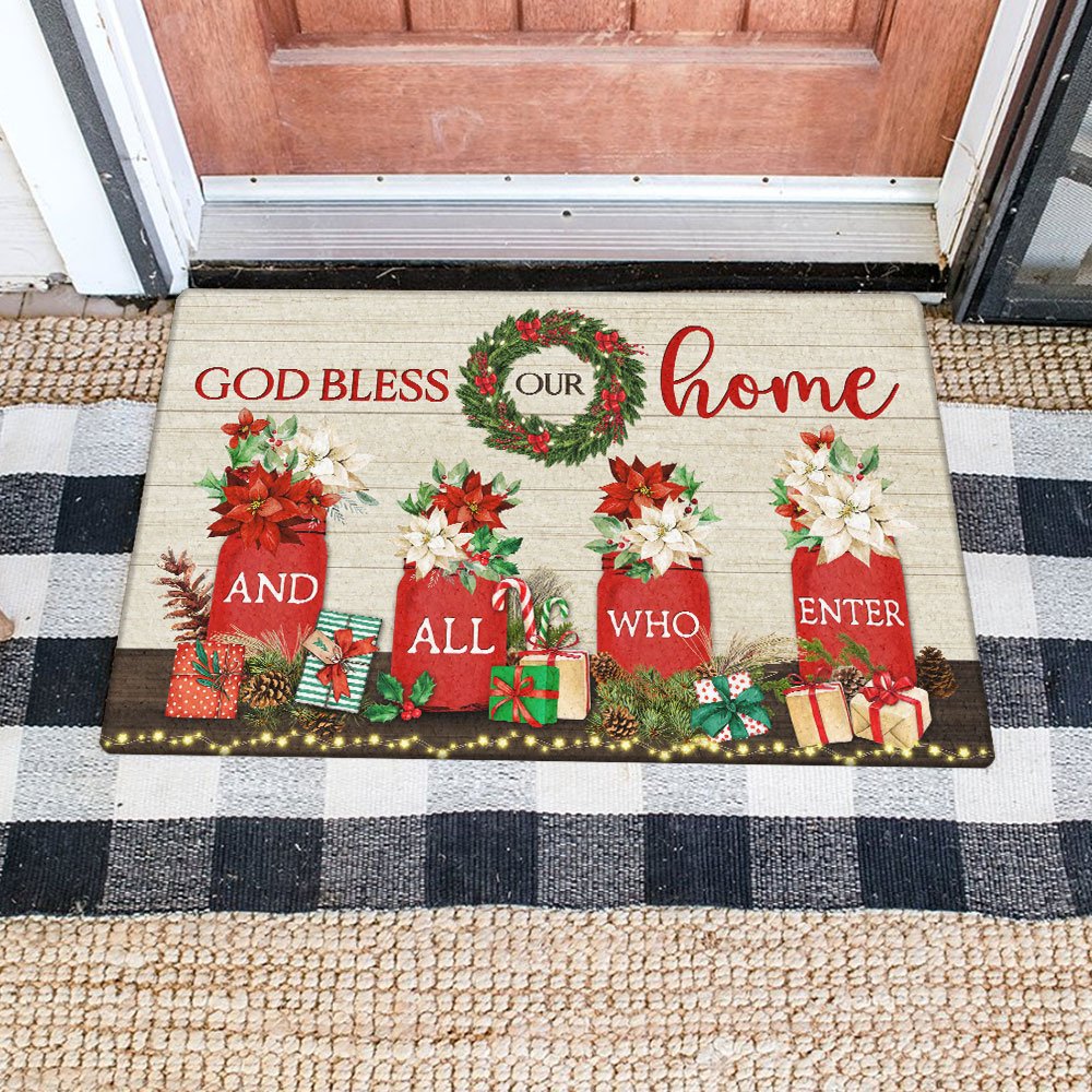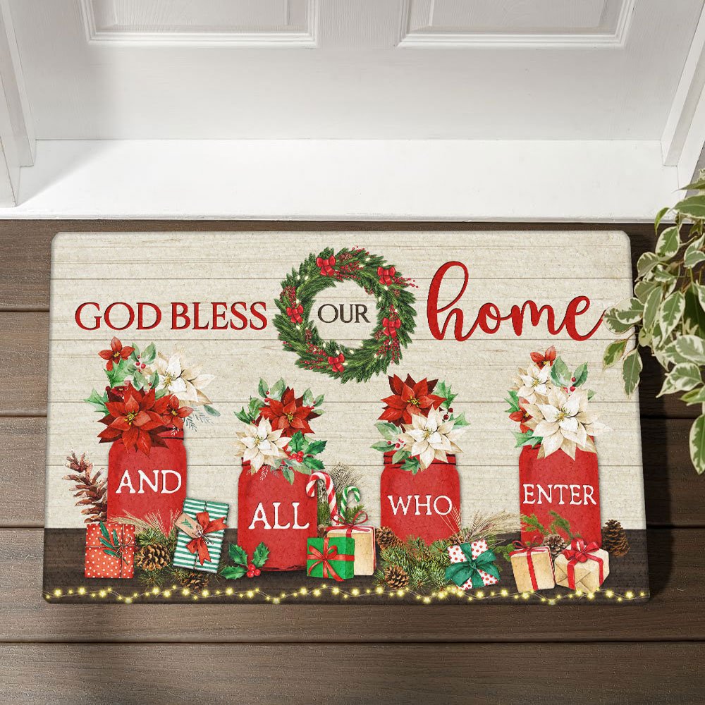 God Bless Our Home And All Who Enter Christmas Doormat TQN619DMCT
