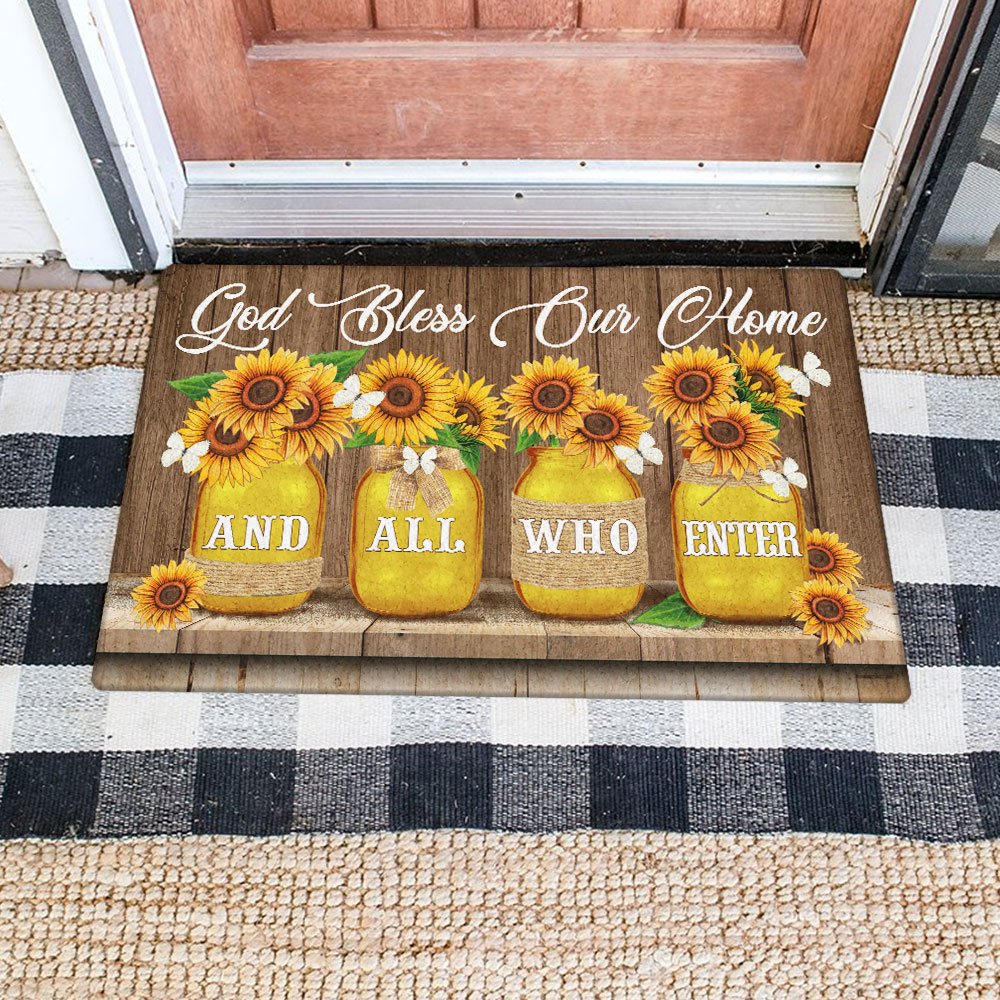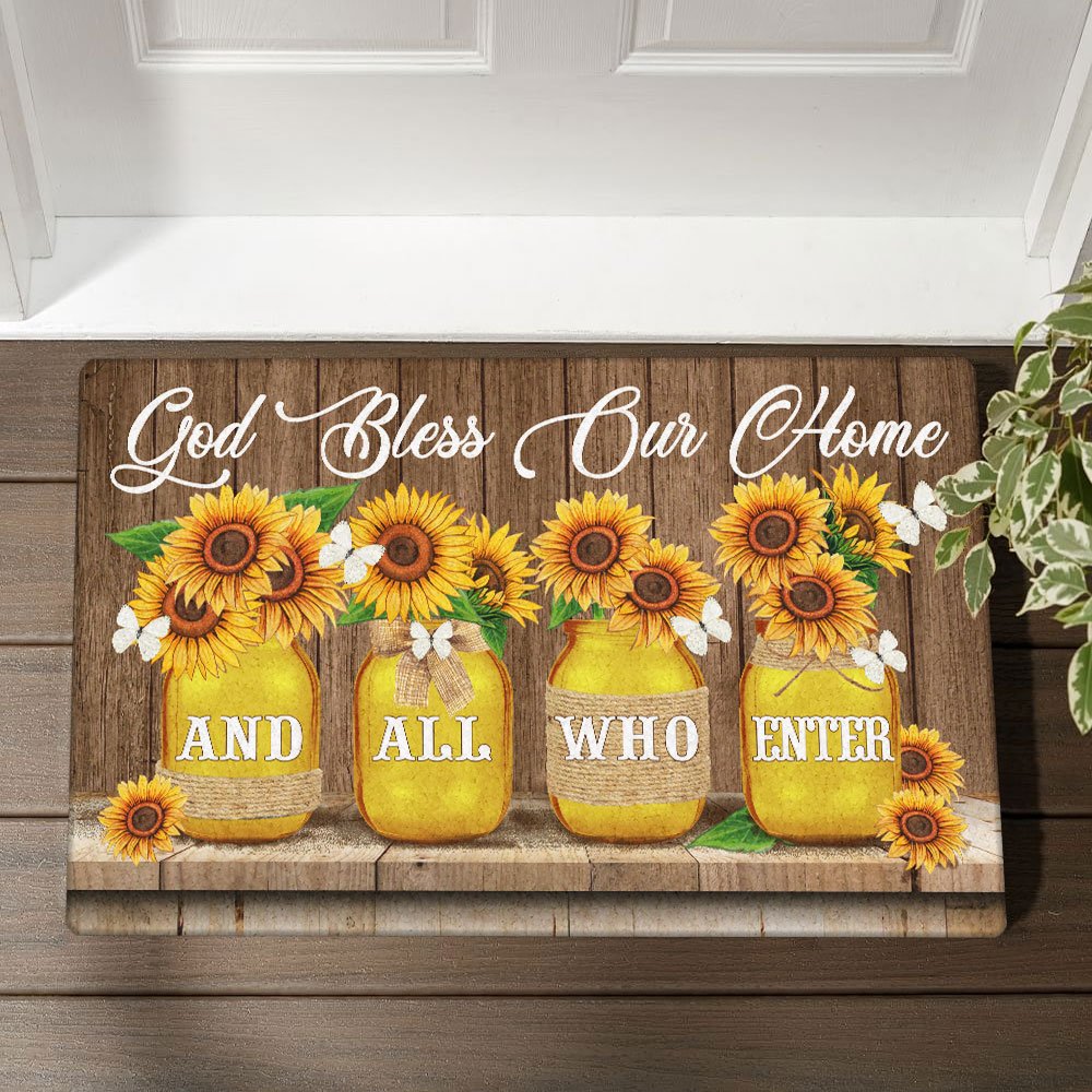God Bless Our Home And All Who Enter Sunflowers Doormat TQN652DMCT