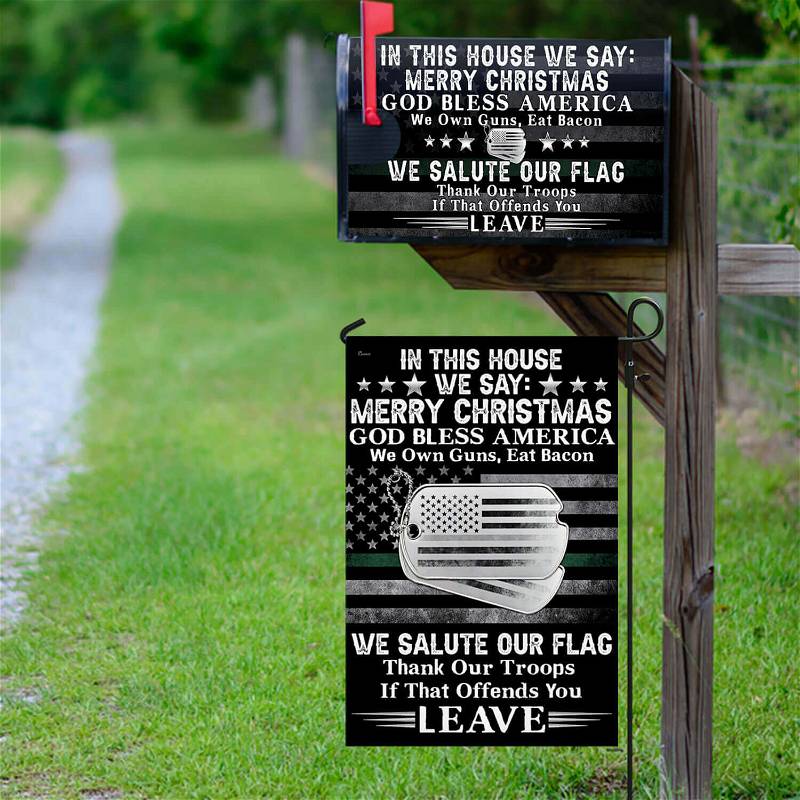 In This House We Say Merry Christmas, God bless America, American Garden Flag & Mailbox Cover TPT422MFCT