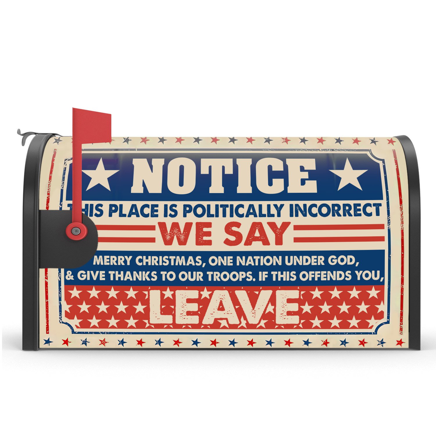 Notice This Place Is Politically Incorrect We Say Merry Christmas Garden Flag & Mailbox Cover TPT419FCT