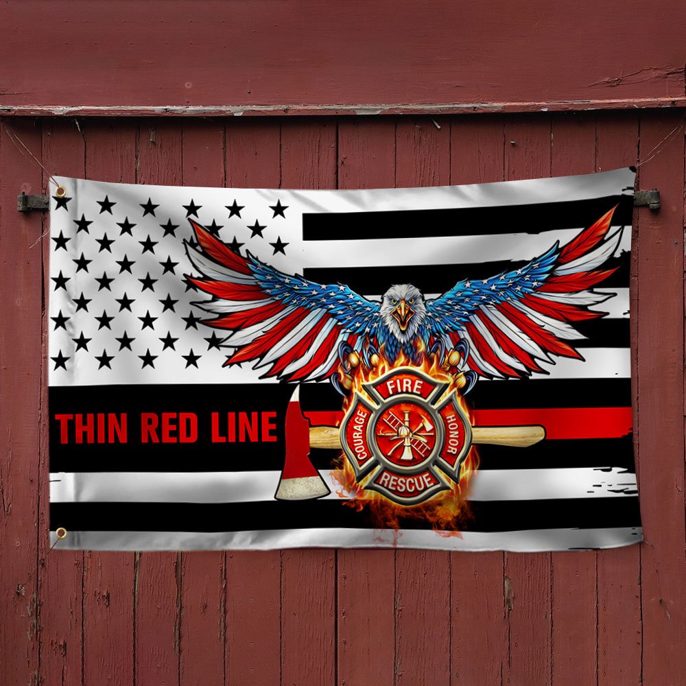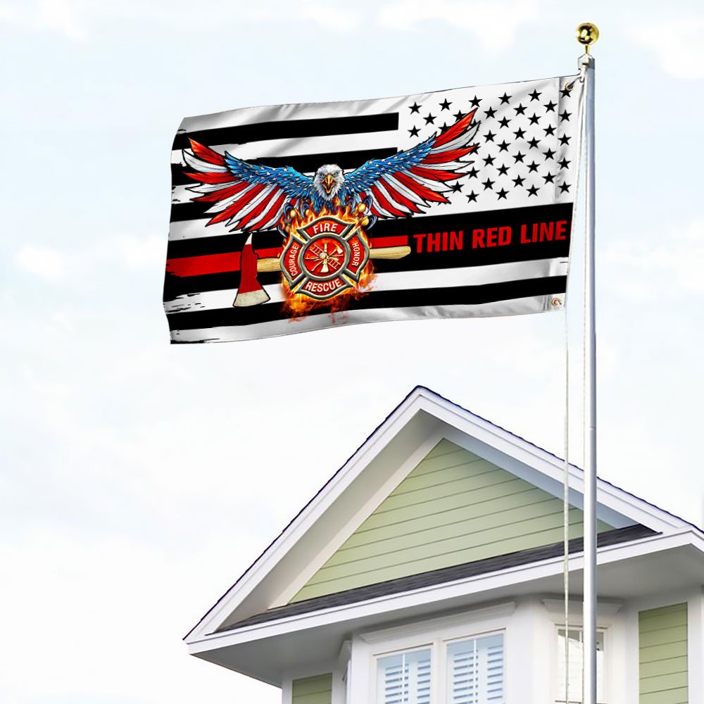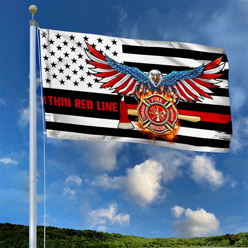 Firefighter Flag Thin Red Line Firefighter American Eagle Grommet Flag QTR296GFCT