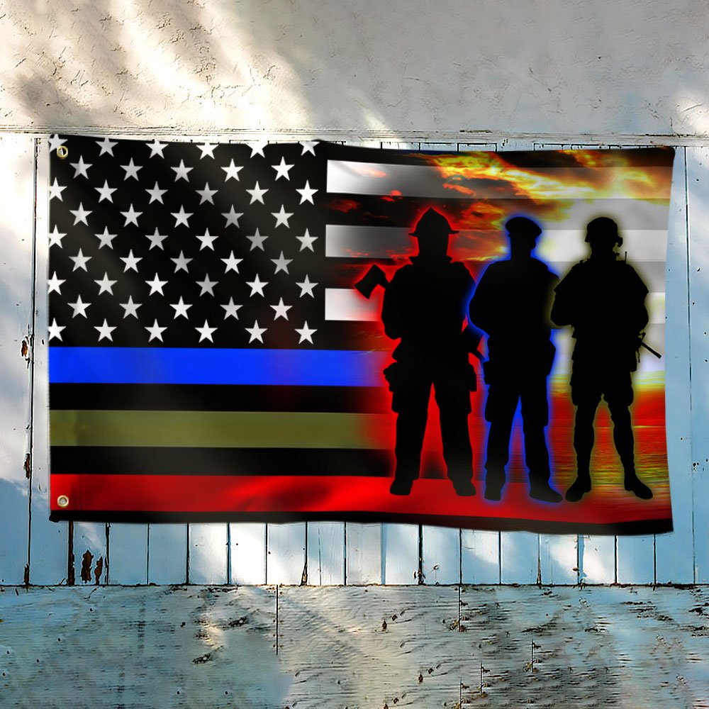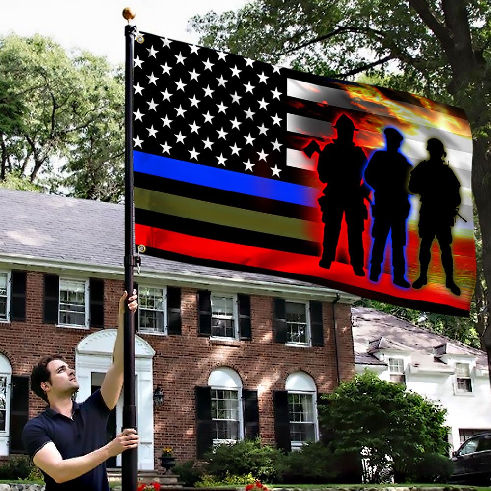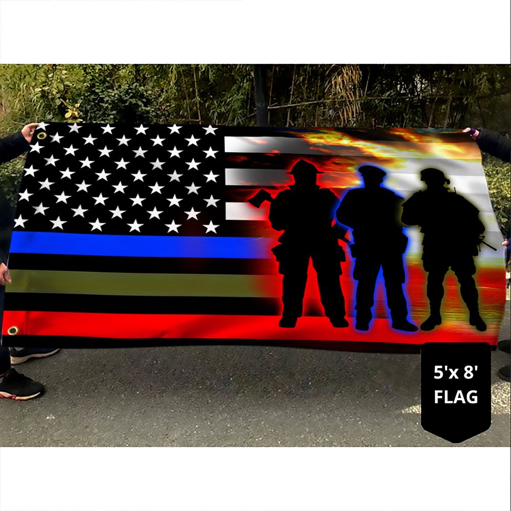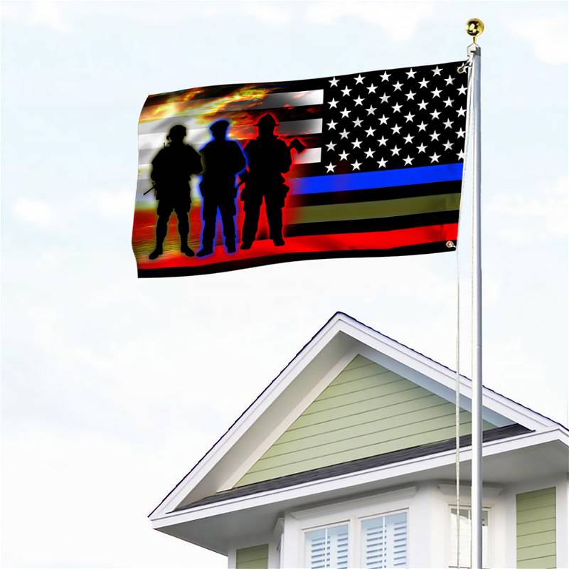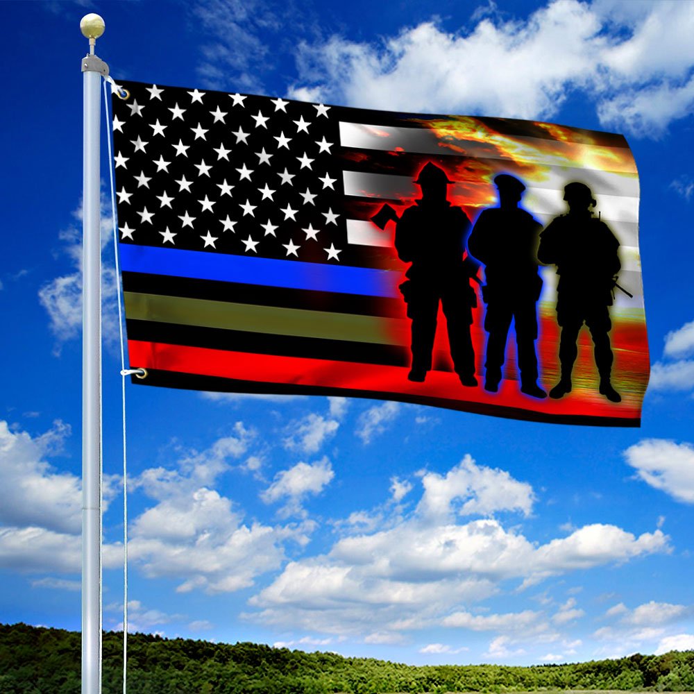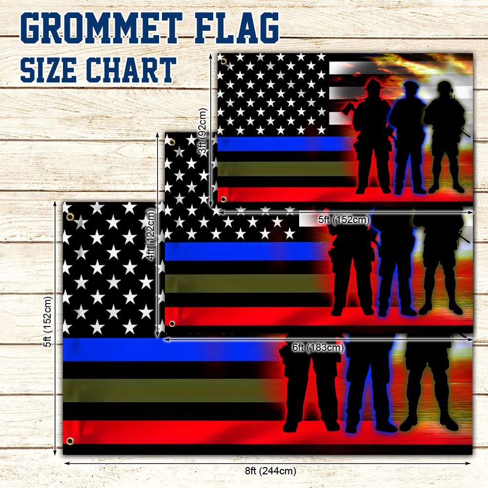 Police Military and Fire Thin Line USA Blue Green Red Line Grommet Flag QNK1089GFCT