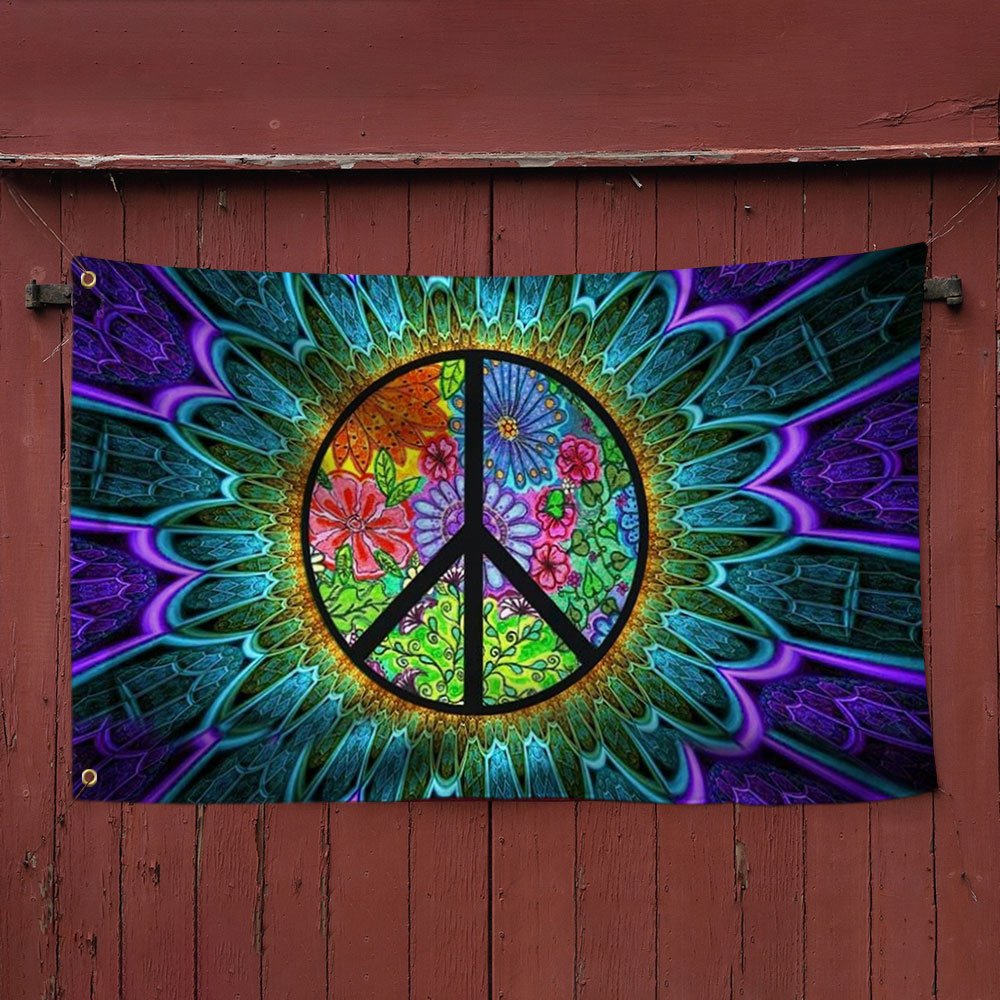 Love Peace Freedom Hippie Grommet Flag QNK163GFCT