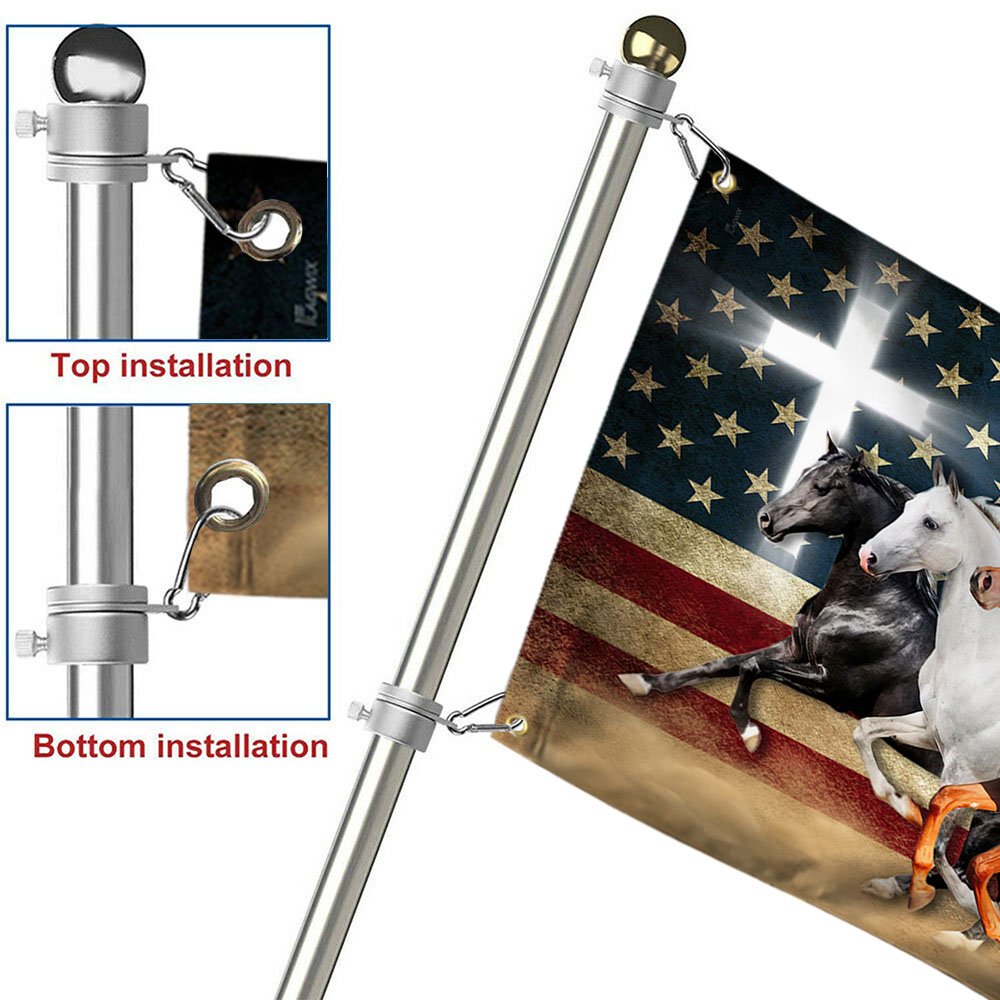 - The flag is made of 100% polyester and is equipped with 2 heavy metal grommets. And available with two options: No Flag Pole Rings and With Flag Pole Rings, so it is easy to hang on. You can choose the right hanging method according to your needs.