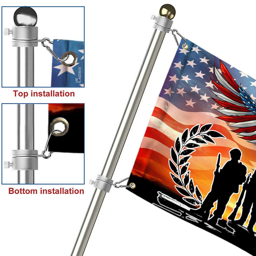 - The flag is made of 100% polyester and is equipped with 2 heavy metal grommets. And available with two options: No Flag Pole Rings and With Flag Pole Rings, so it is easy to hang on. You can choose the right hanging method according to your needs.