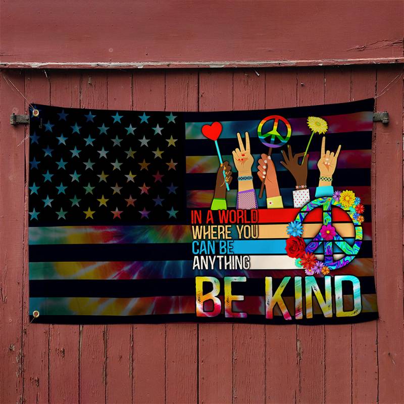 Hippie Flag In A World Where You Can Be Anything Be Kind Grommet Flag MLN189GFCT