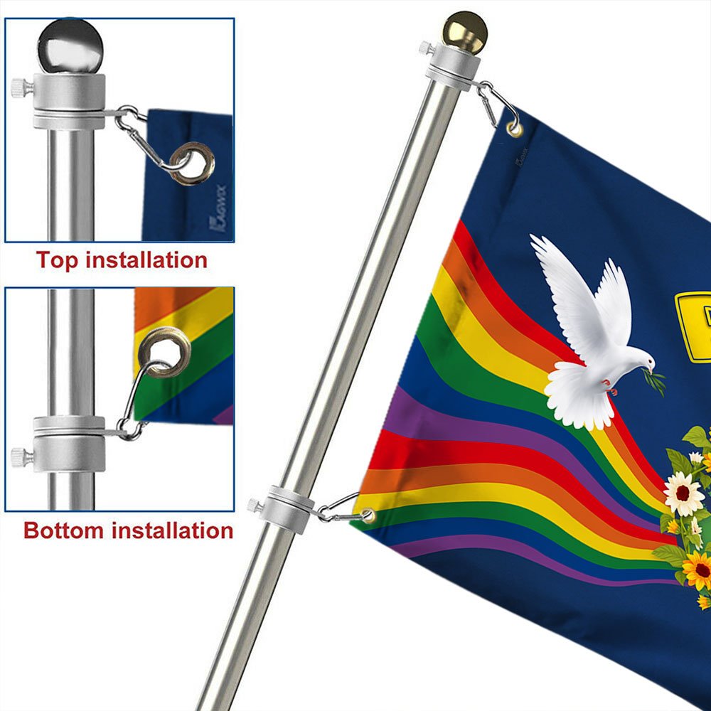 - The flag is made of 100% polyester and is equipped with 2 heavy metal grommets. And available with two options: No Flag Pole Rings and With Flag Pole Rings, so it is easy to hang on. You can choose the right hanging method according to your needs.