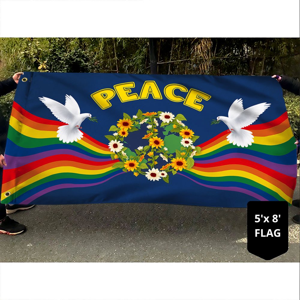 Hippie Flag Dove Peace Hippie Grommet Flag QTR94GFCT