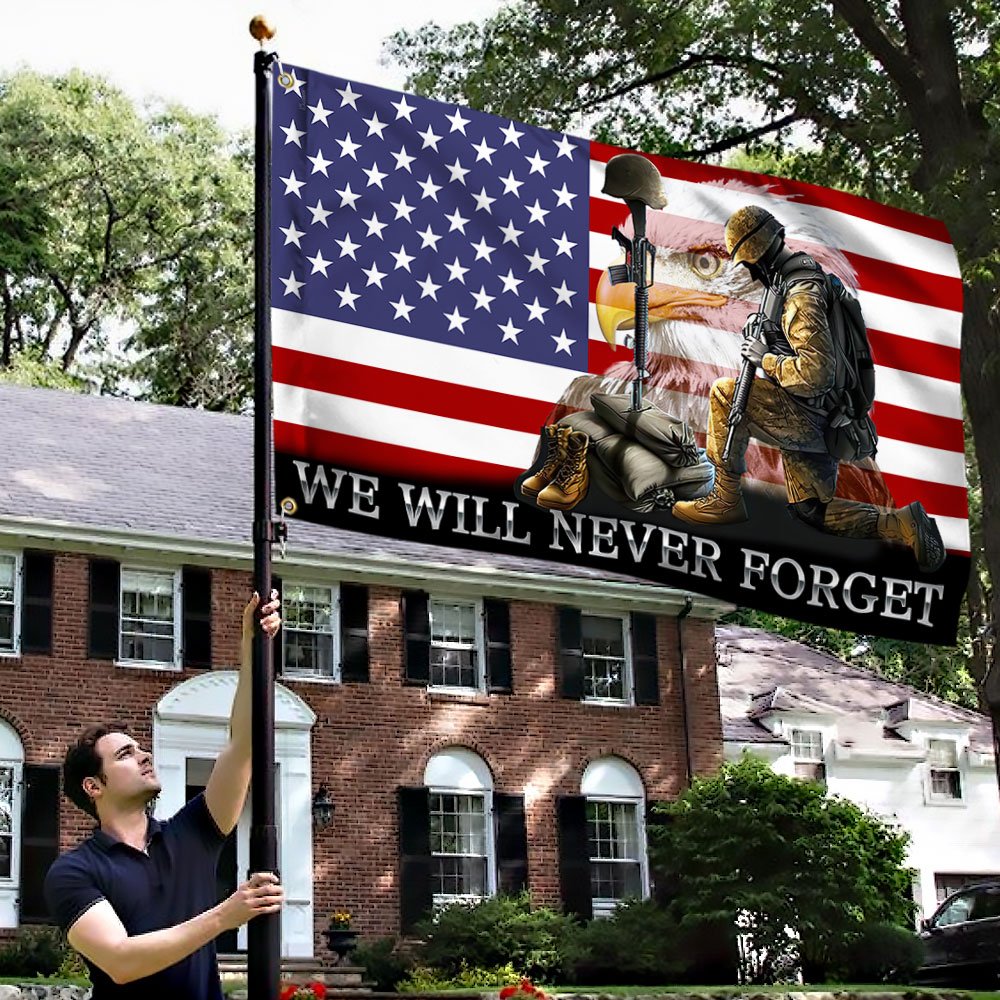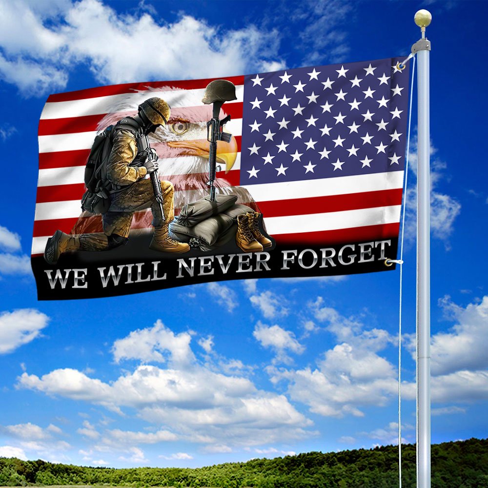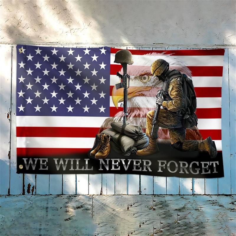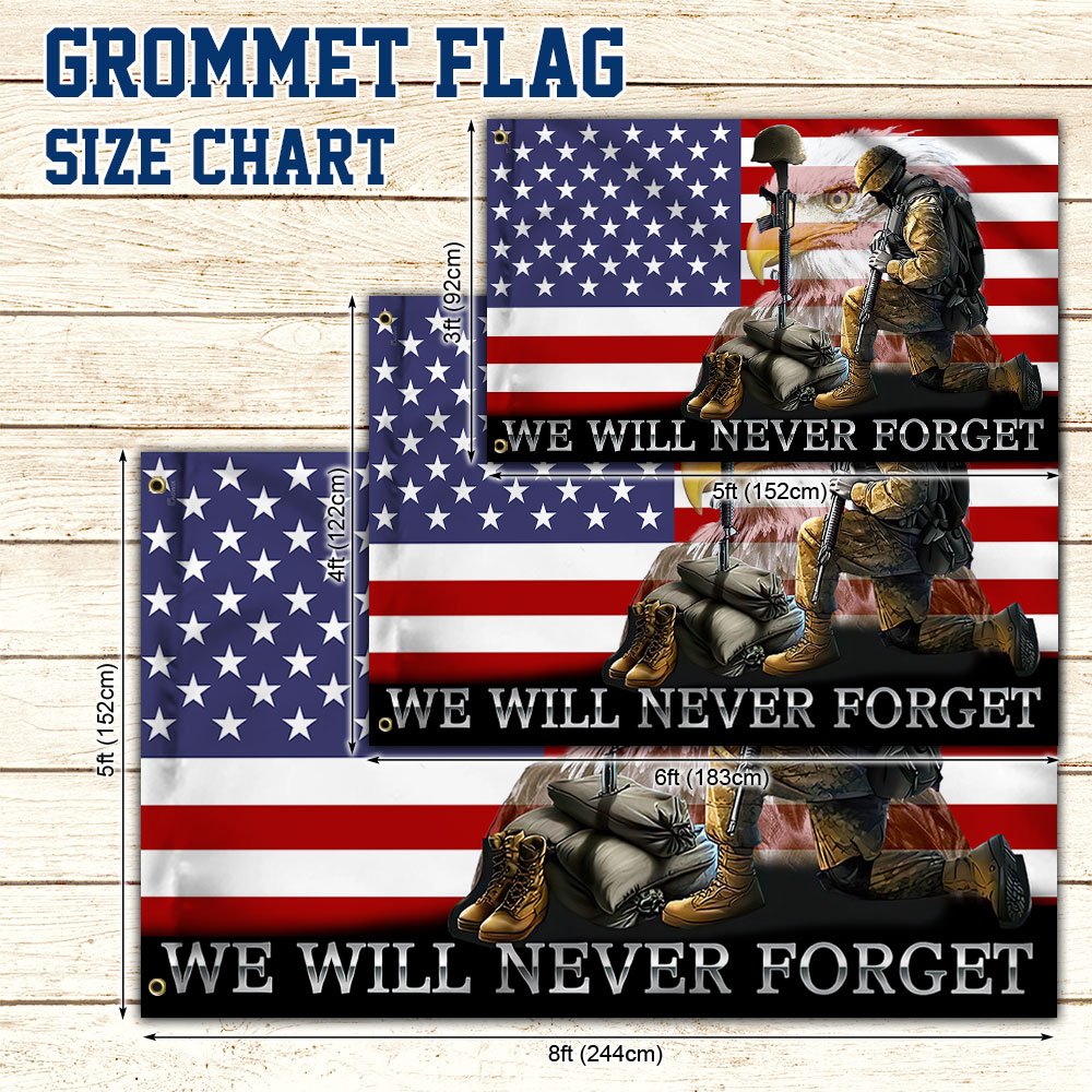 Veteran Flag Memorial Day We Will Never Forget US Veteran American Grommet Flag QTR128GFCT