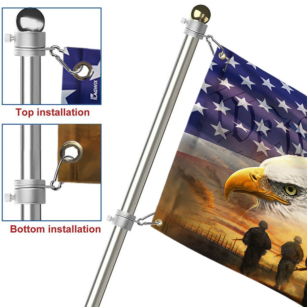 - The flag is made of 100% polyester and is equipped with 2 heavy metal grommets. And available with two options: No Flag Pole Rings and With Flag Pole Rings, so it is easy to hang on. You can choose the right hanging method according to your needs.