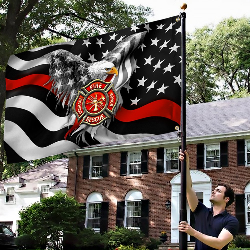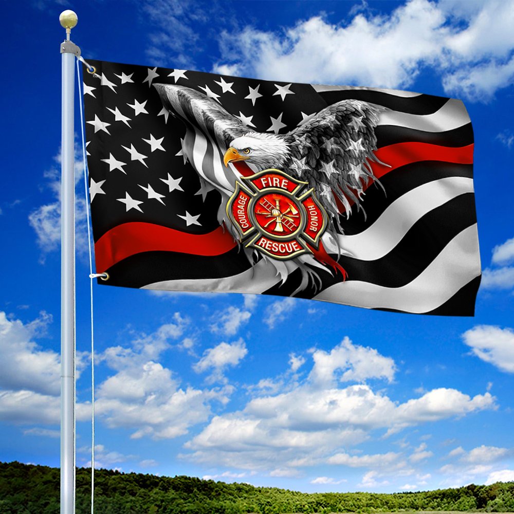 Firefighter Grommet Flag Courage Honor Rescue American Eagle BNN37GFv1CT
