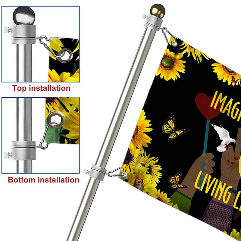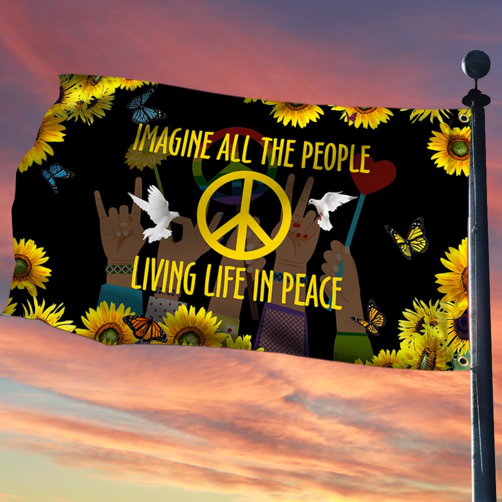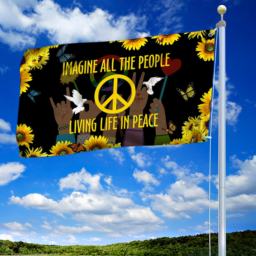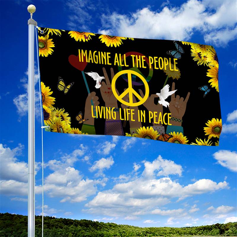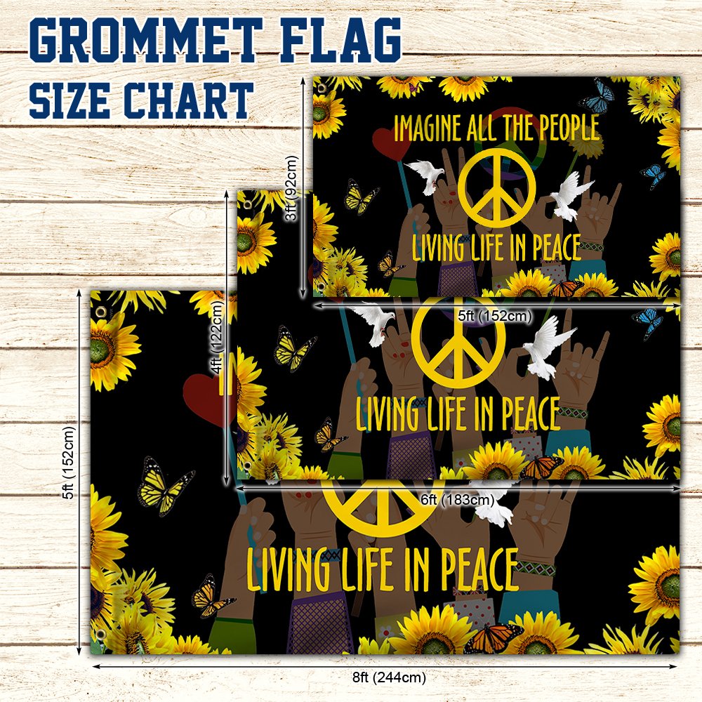 Hippie Sunflower Peace Sign Flag Imagine All The People Living Life In Peace Grommet Flag MLN275GFCT