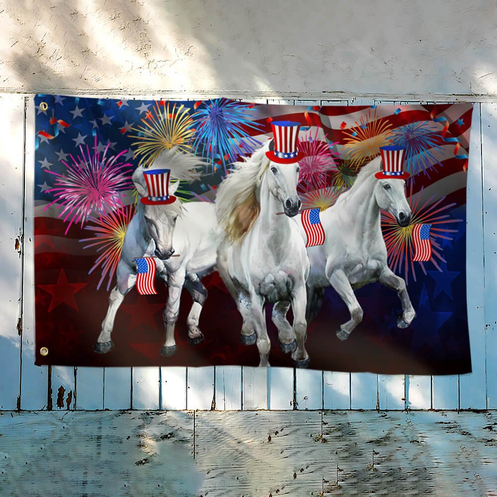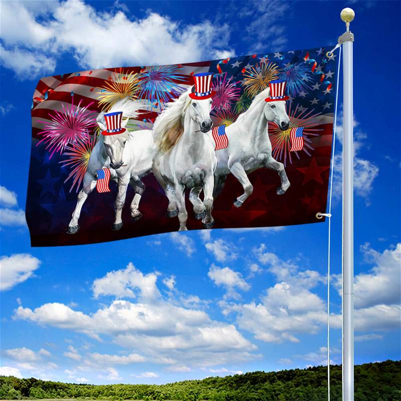 Horses Flag Independence Day Horses American Grommet Flag QTR36GFCT
