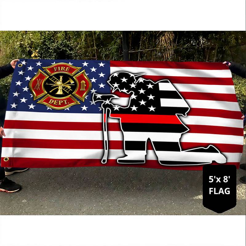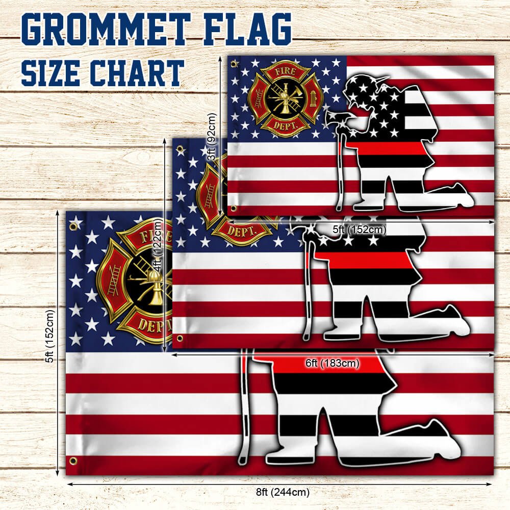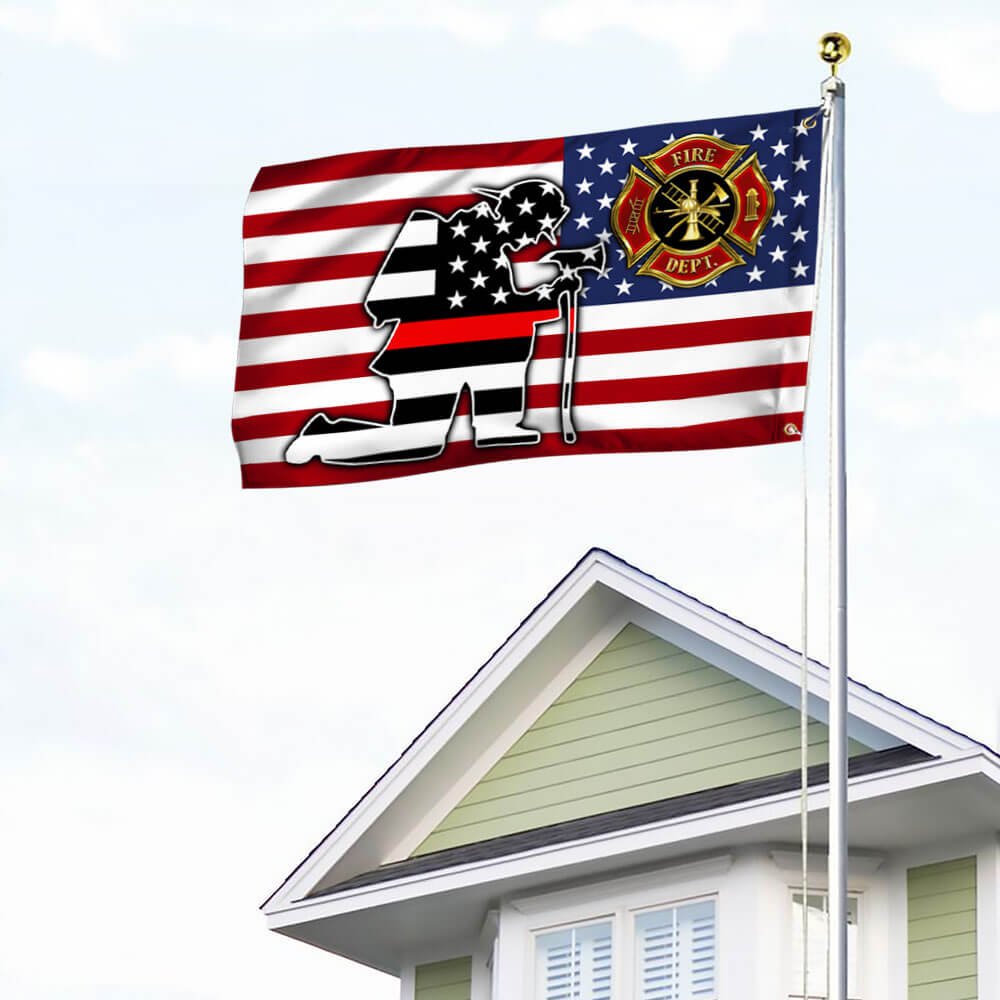 Kneeling Firefighter Thin Red Line Grommet Flag THB3844GFv1CT
