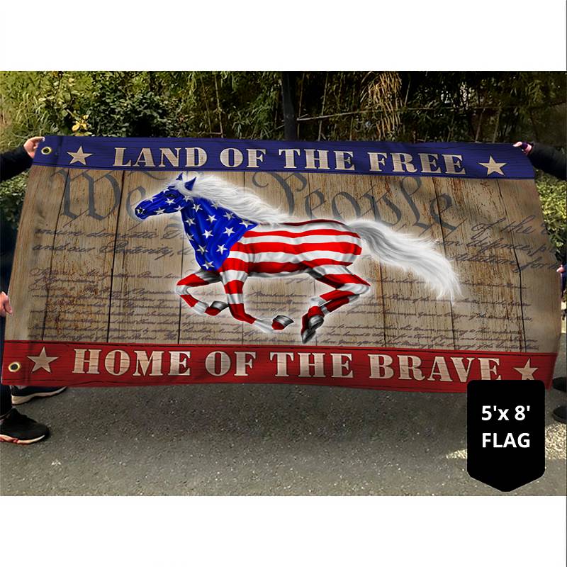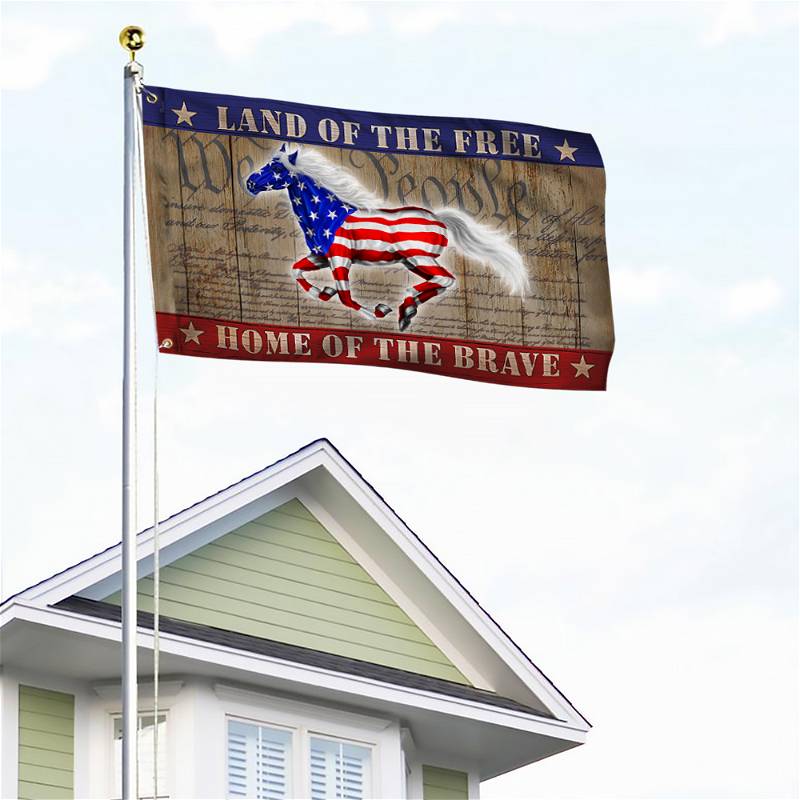 Horse Grommet Flag Land of the Free Home of the Brave American Patriot BNN337GFCT