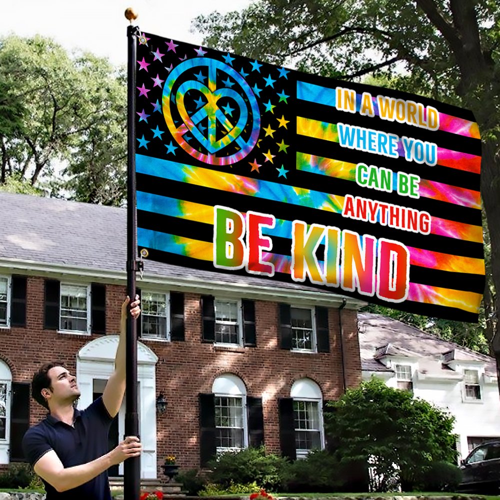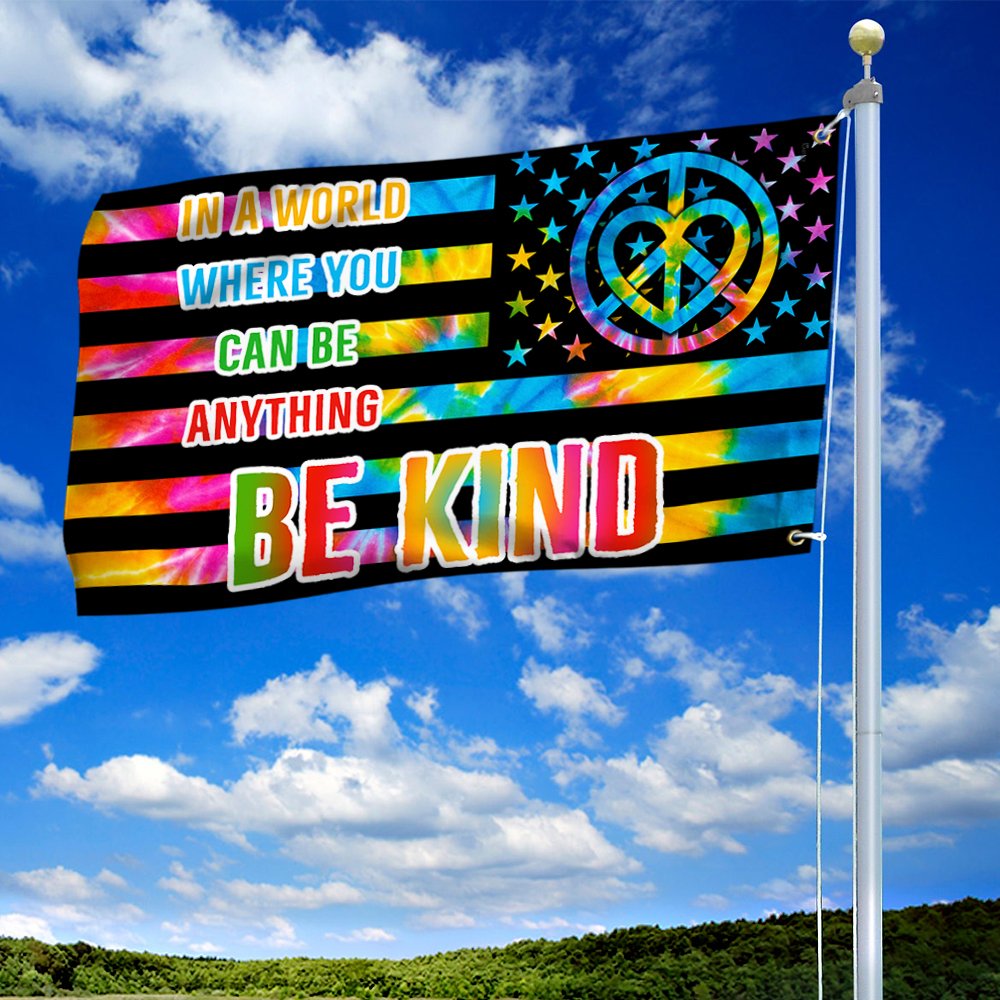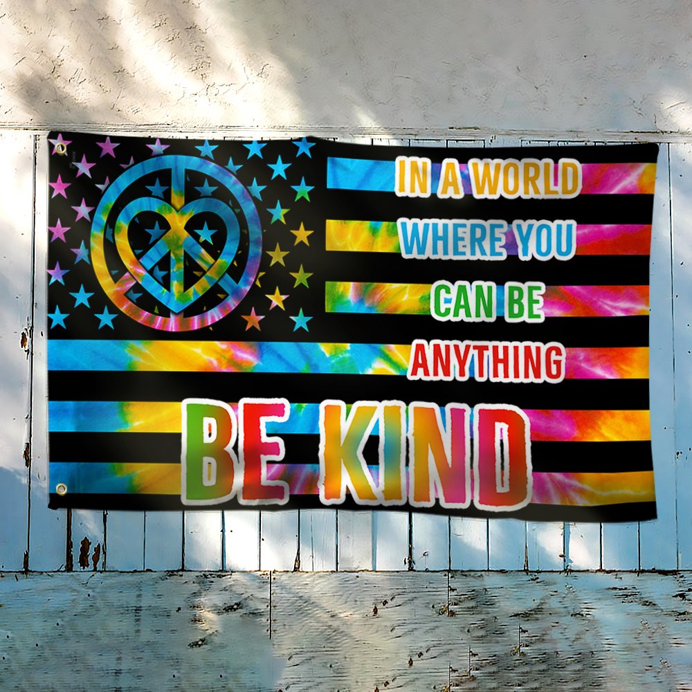 Hippie Flag In A World Where You Can Be Anything Be Kind Grommet Flag QTR258GFCT
