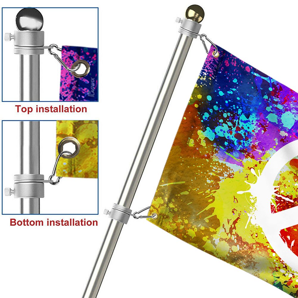 - The flag is made of 100% polyester and is equipped with 2 heavy metal grommets. And available with two options: No Flag Pole Rings and With Flag Pole Rings, so it is easy to hang on. You can choose the right hanging method according to your needs.