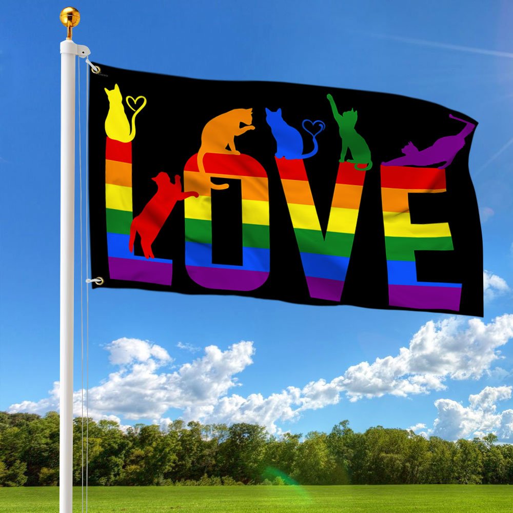 LGBT Pride Month Love Cat Grommet Flag TQN232GFCT