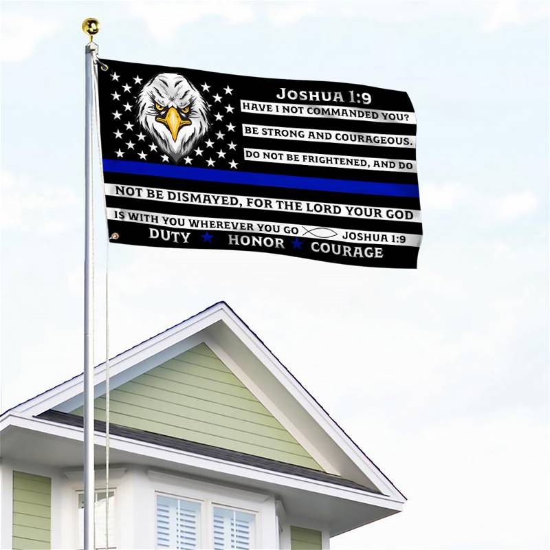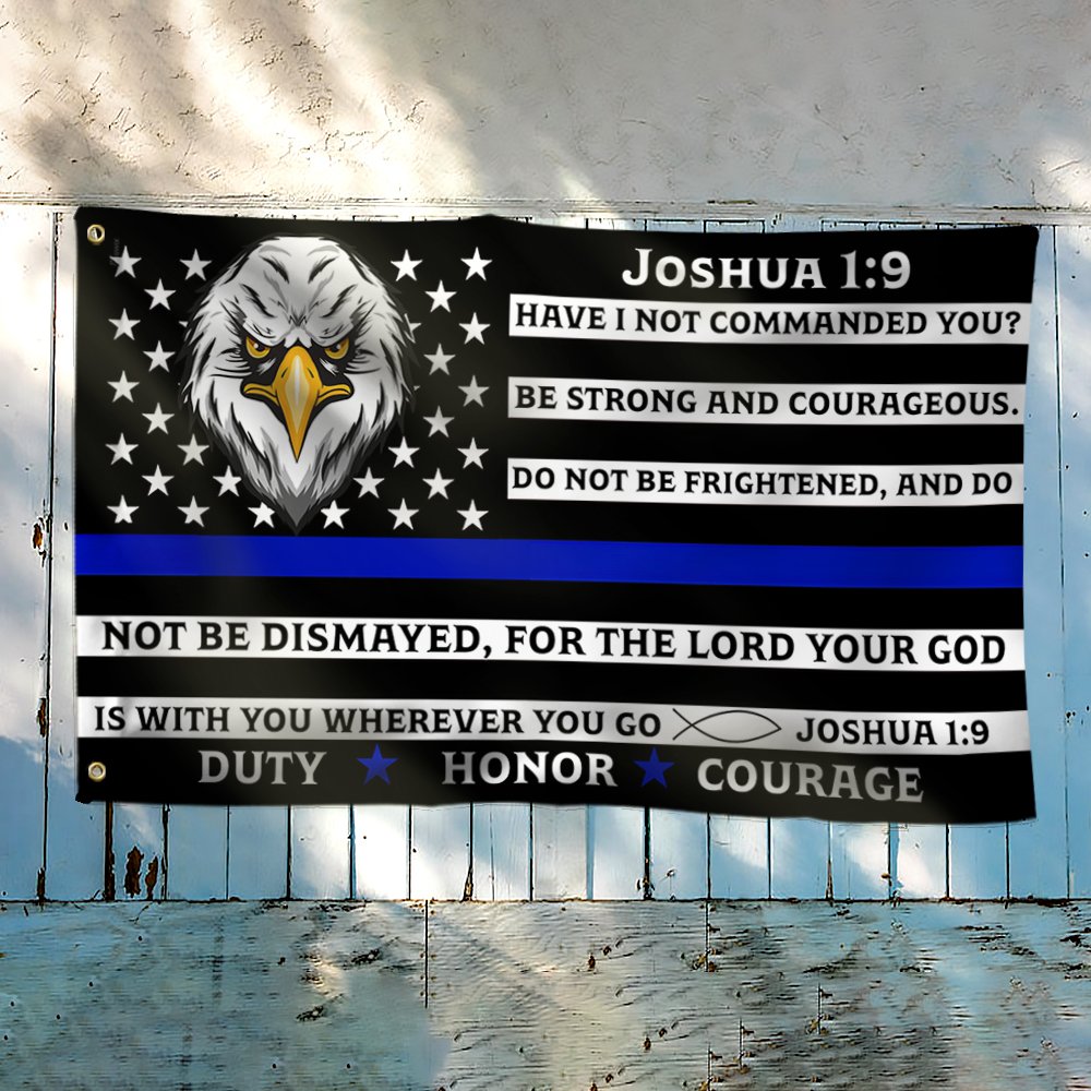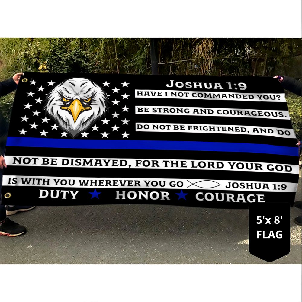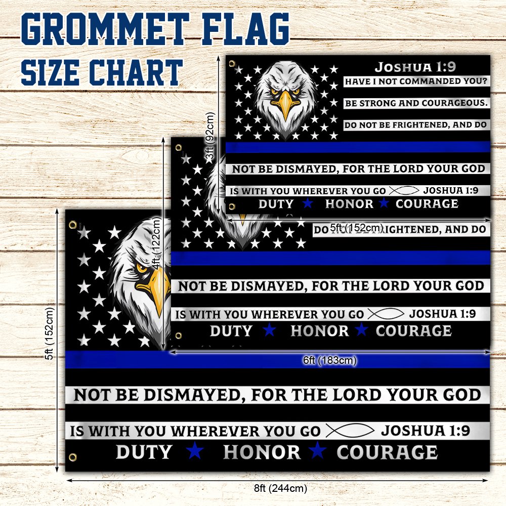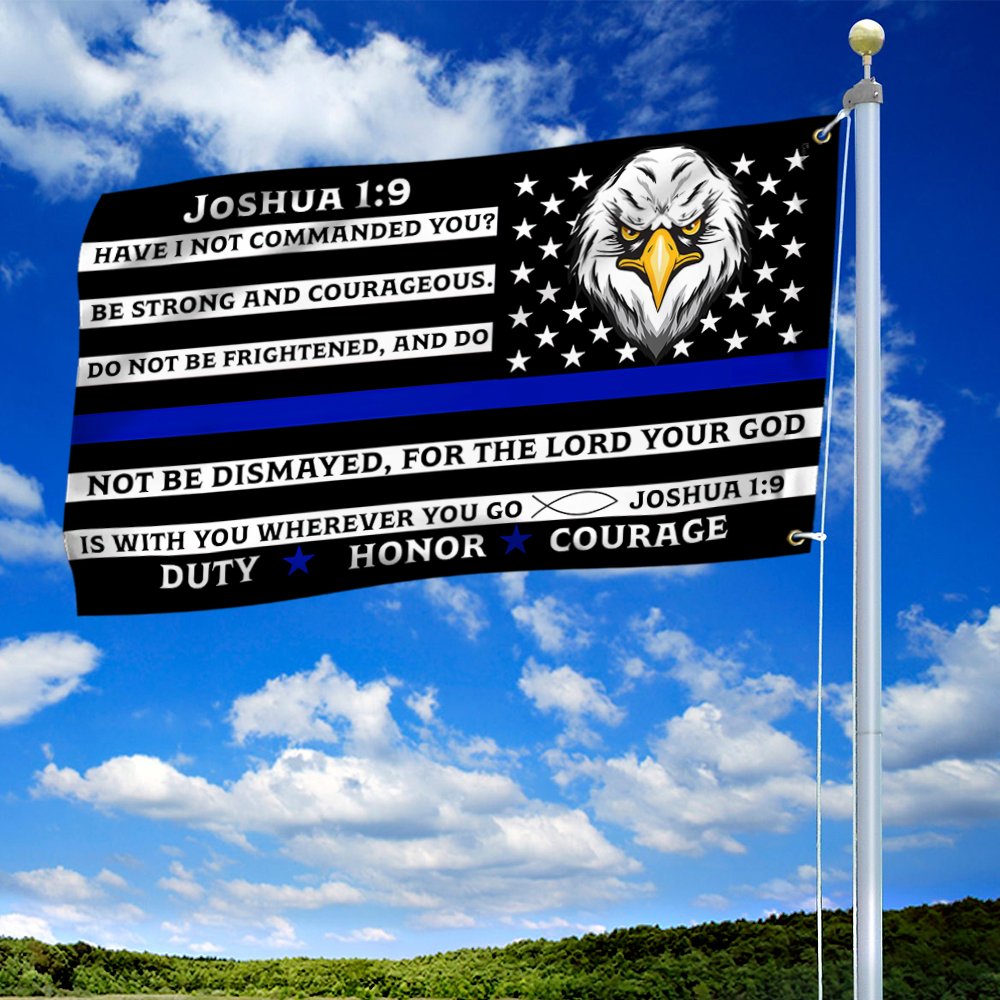 Thin Blue Line Police Grommet Flag, Law Enforcement Joshua 1:9 Duty Honor Courage TQN64GFCT