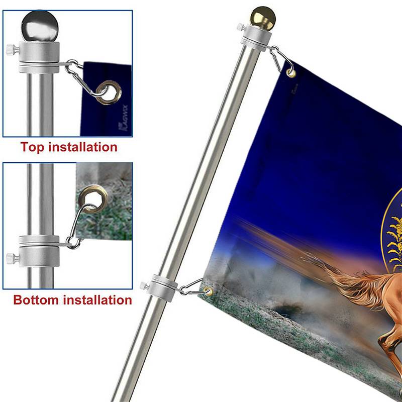 - The flag is made of 100% polyester and is equipped with 2 heavy metal grommets. And available with two options: No Flag Pole Rings and With Flag Pole Rings, so it is easy to hang on. You can choose the right hanging method according to your needs.