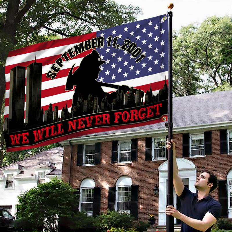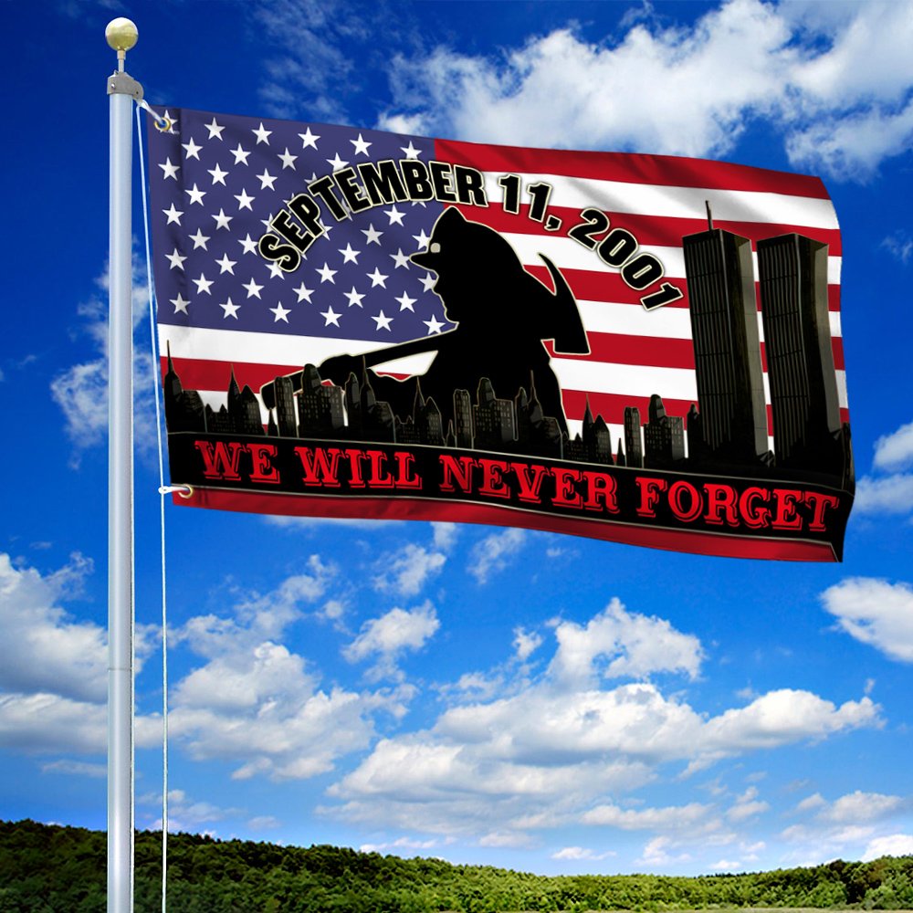 Firefighter 911 Flag September 11. We Will Never Forget. Patriot Day Grommet Flag TPT230GFCT