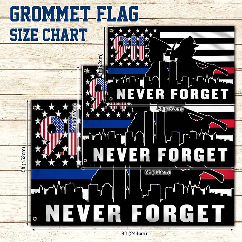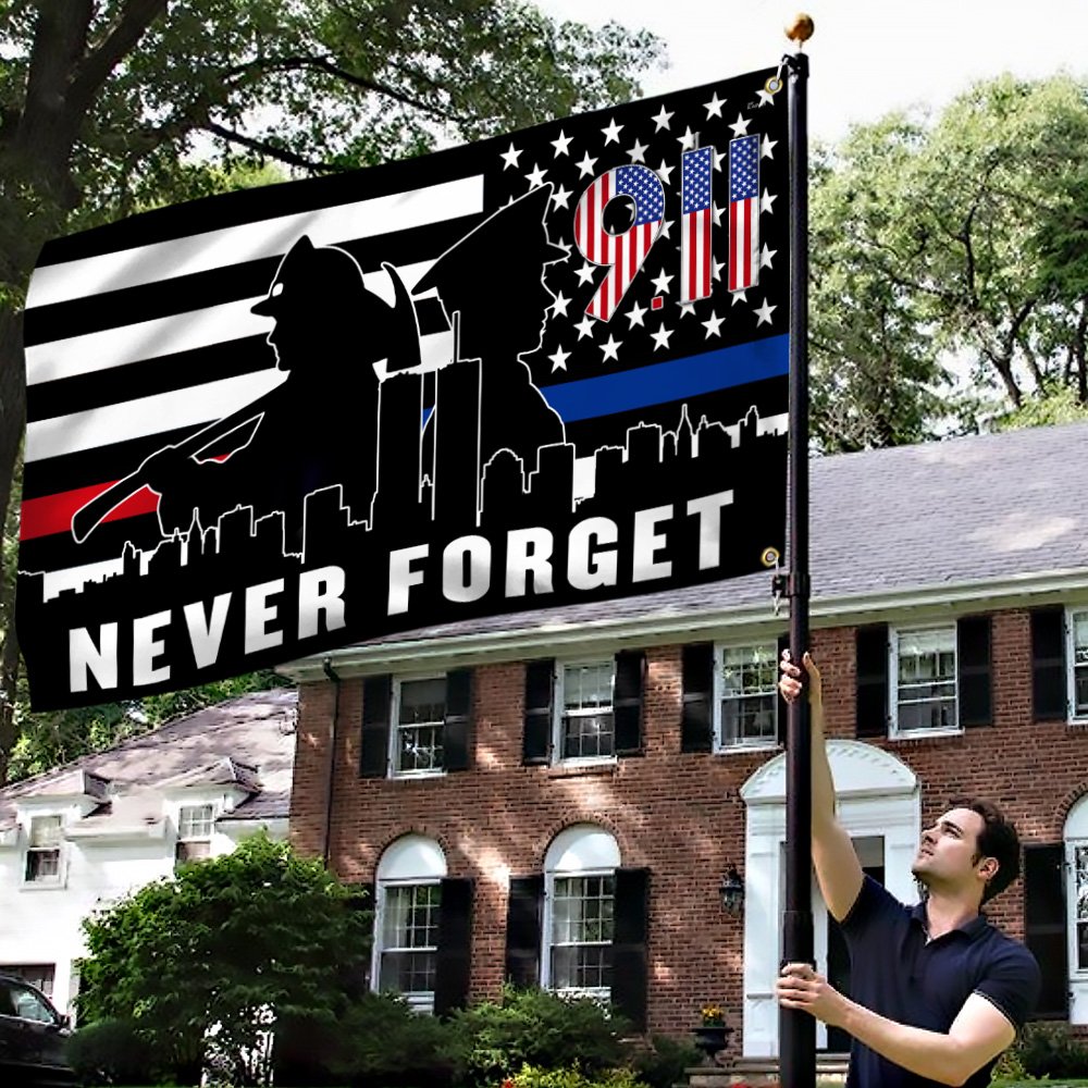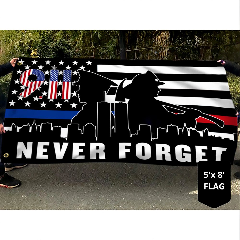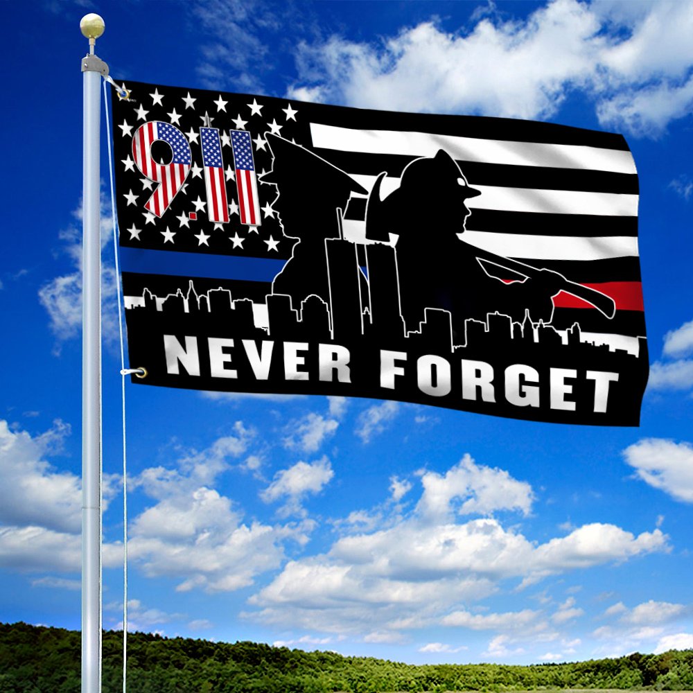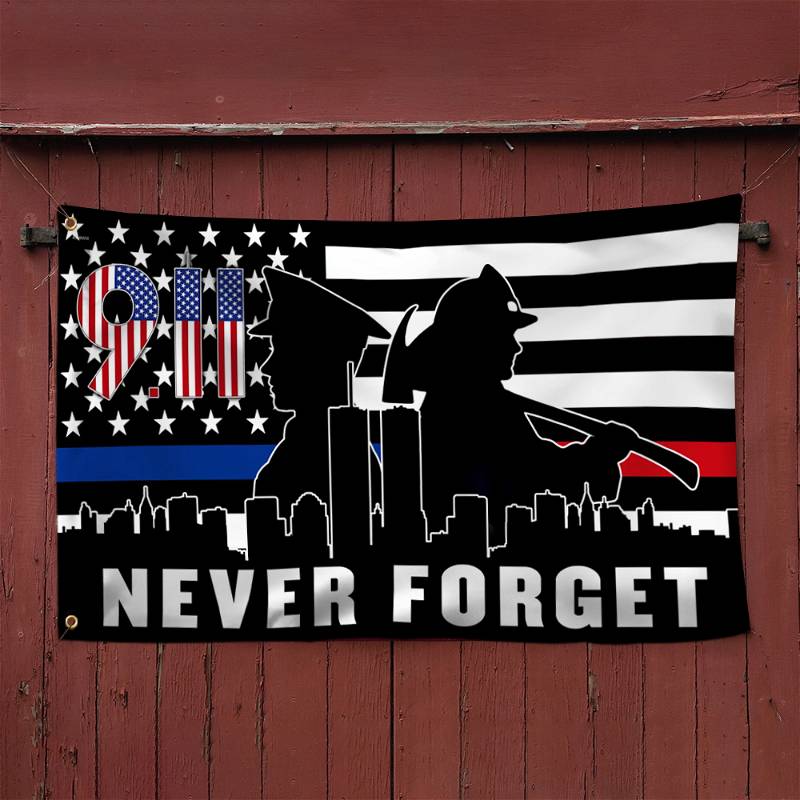 911 Flag Never Forget. Police, Firefighter September 11 American Patriotic Flag TPT233GFCT