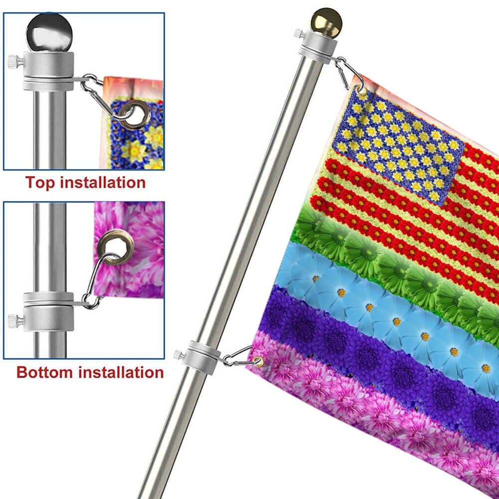 - The flag is made of 100% polyester and is equipped with 2 heavy metal grommets. And available with two options: No Flag Pole Rings and With Flag Pole Rings, so it is easy to hang on. You can choose the right hanging method according to your needs.