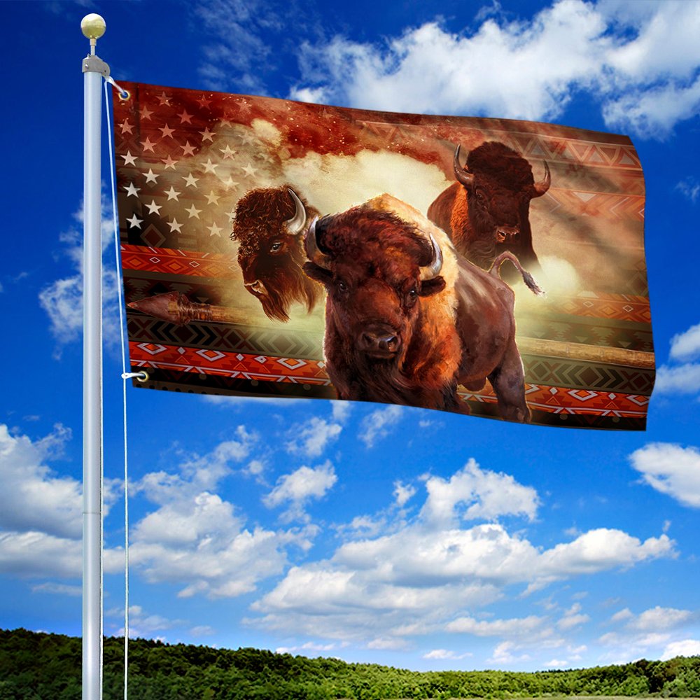 Native American Grommet Flag Bison Cows BNT208GFv1CT