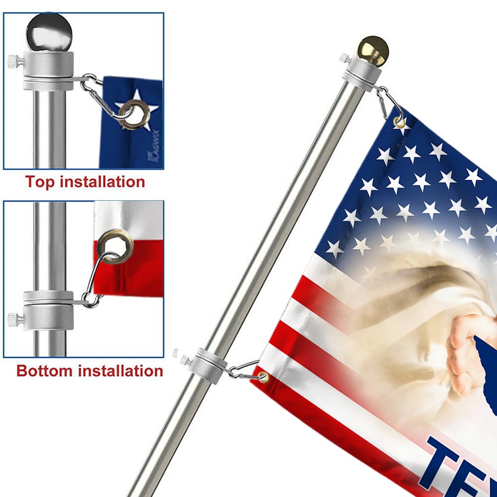 - The flag is made of 100% polyester and is equipped with 2 heavy metal grommets. And available with two options: No Flag Pole Rings and With Flag Pole Rings, so it is easy to hang on. You can choose the right hanging method according to your needs.