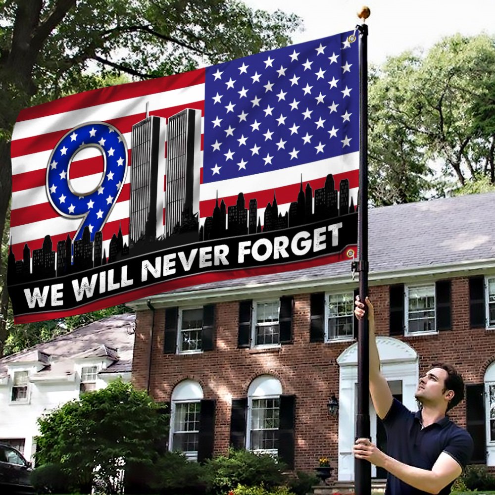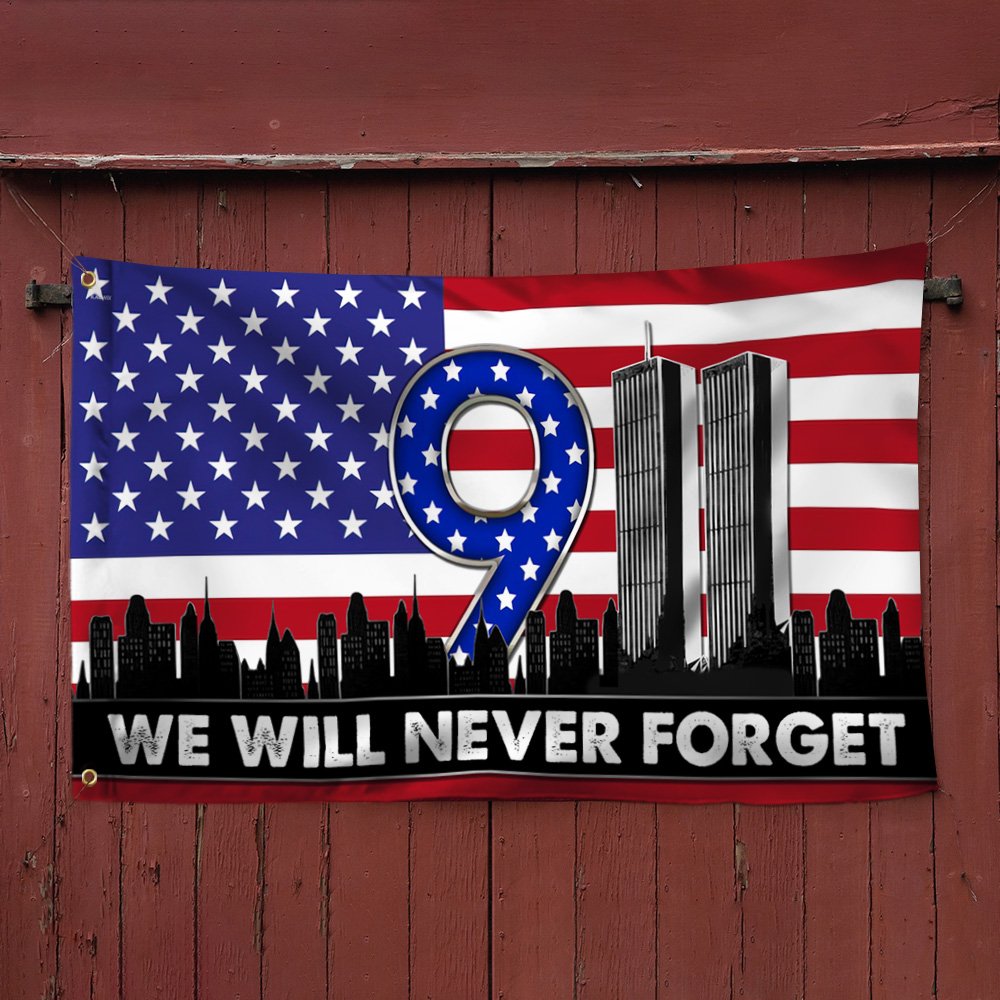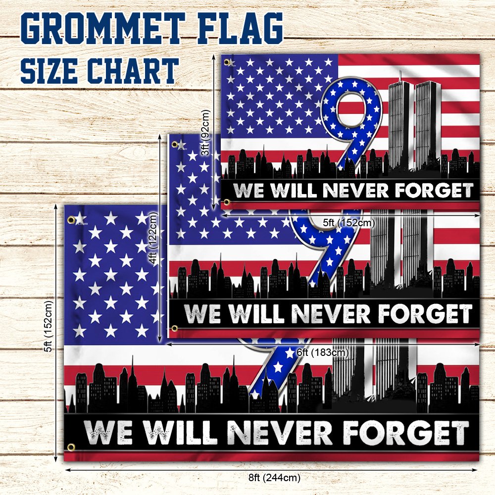 911 Flag September 11. We Will Never Forget. Patriot Day Grommet Flag TPT230GFv1CT