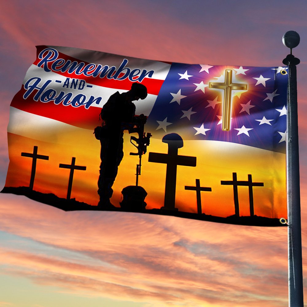 God Bless Our Troops Veteran Grommet Flag Memorial Day Remember and Honor MLN162GFCT