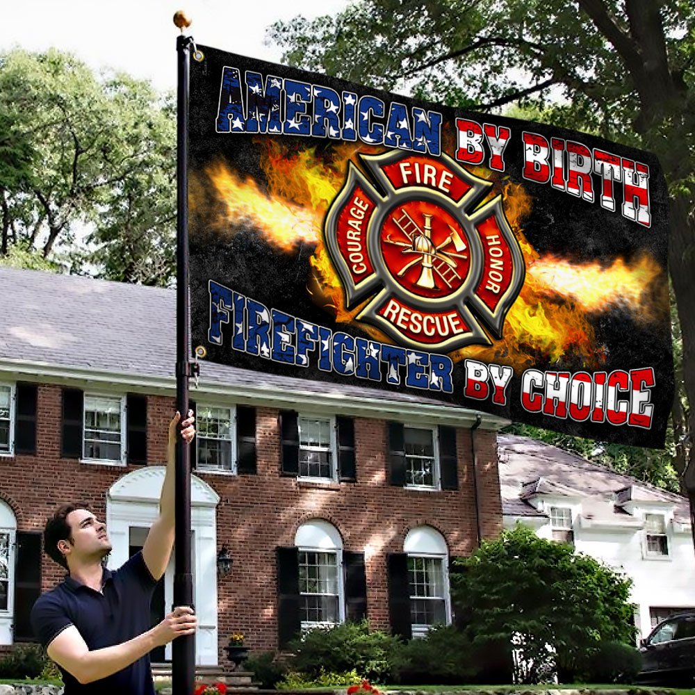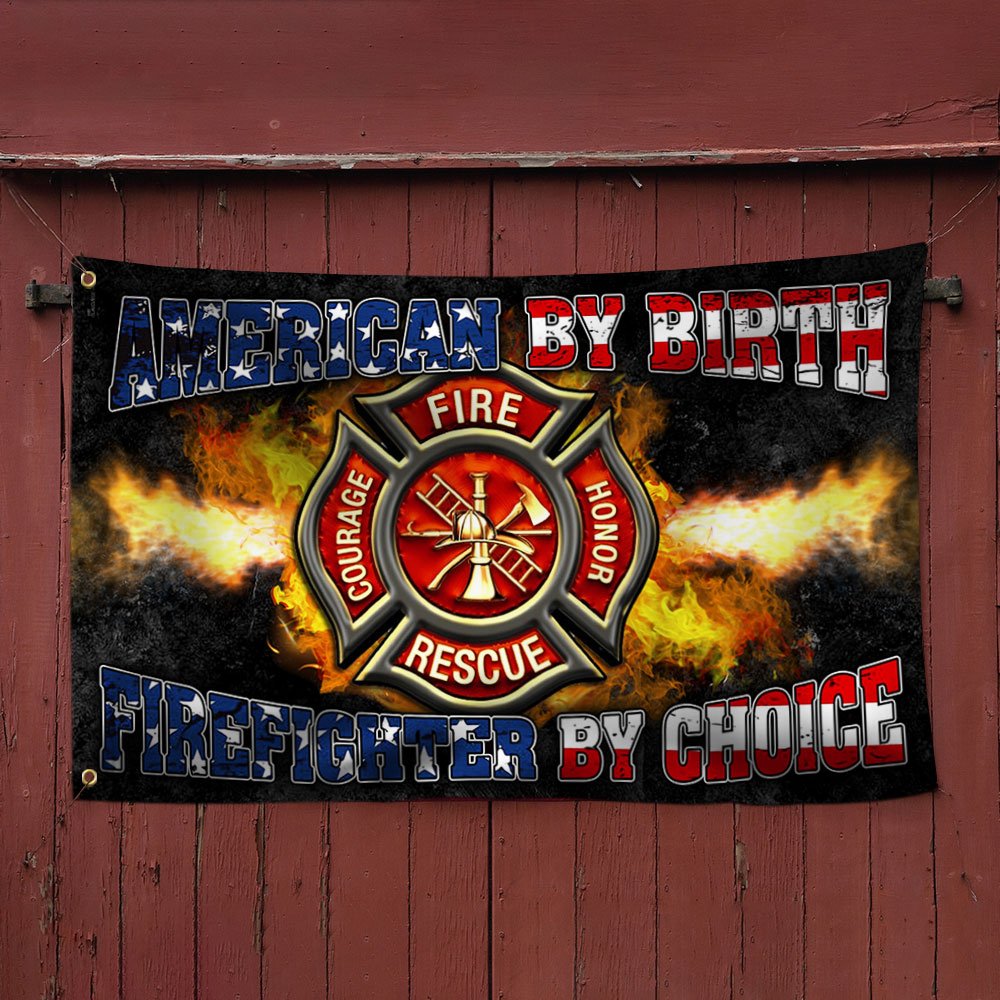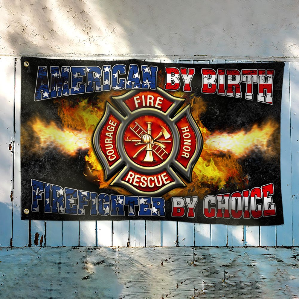 Firefighter Grommet Flag, American By Birth Firefighter By Choice QNK232GFCT