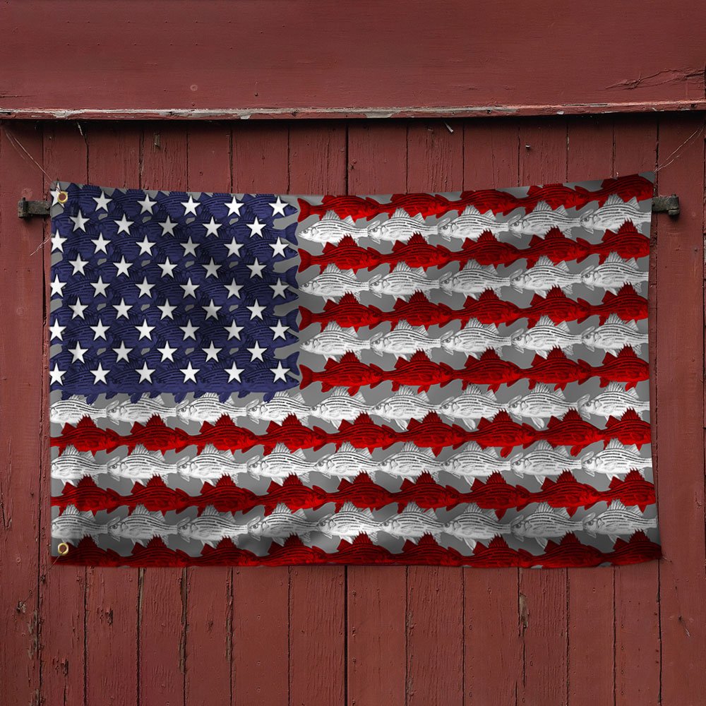 Bass Fish Flag Bas Fishing American Grommet Flag QTR37GFCT