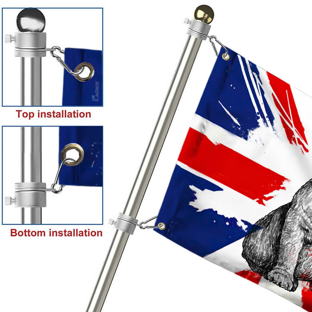 • The flag is made of 100% canvas and is equipped with 2 heavy metal grommets. And available with two options: No Flag Pole Rings and With Flag Pole Rings, so it is easy to hang on. You can choose the right hanging method according to your needs.