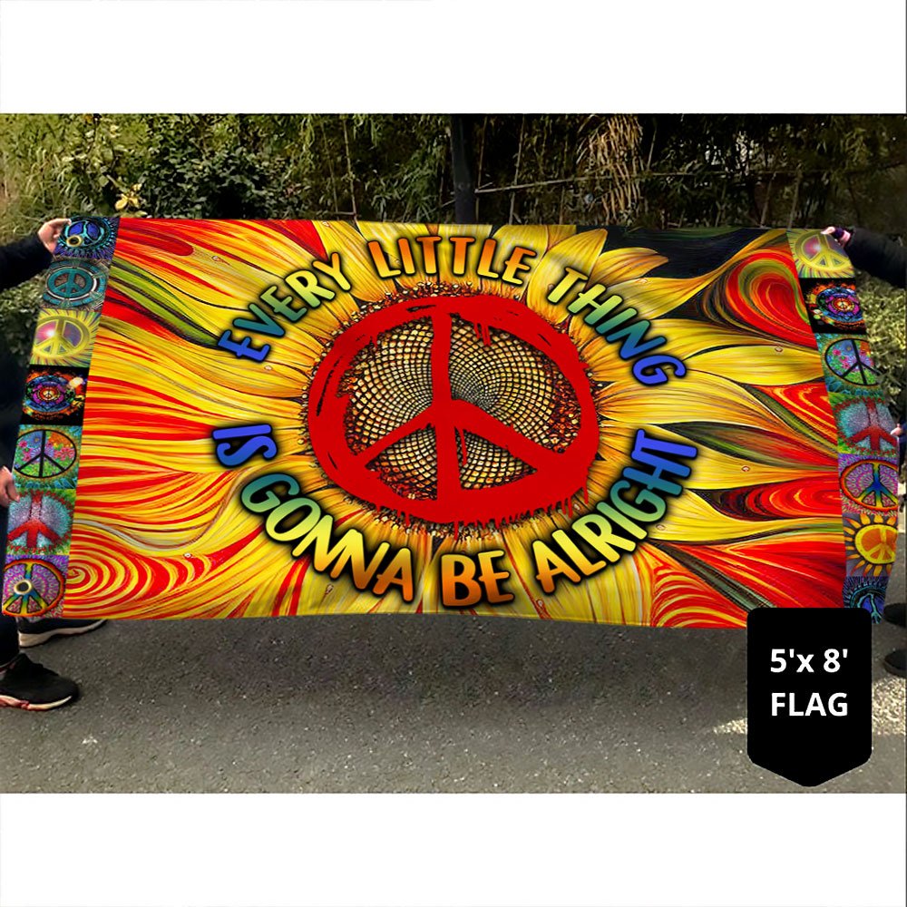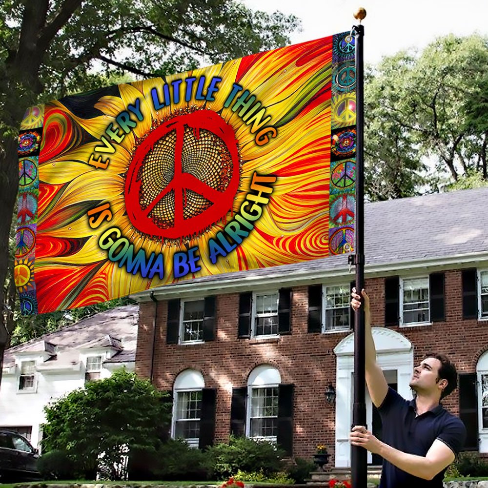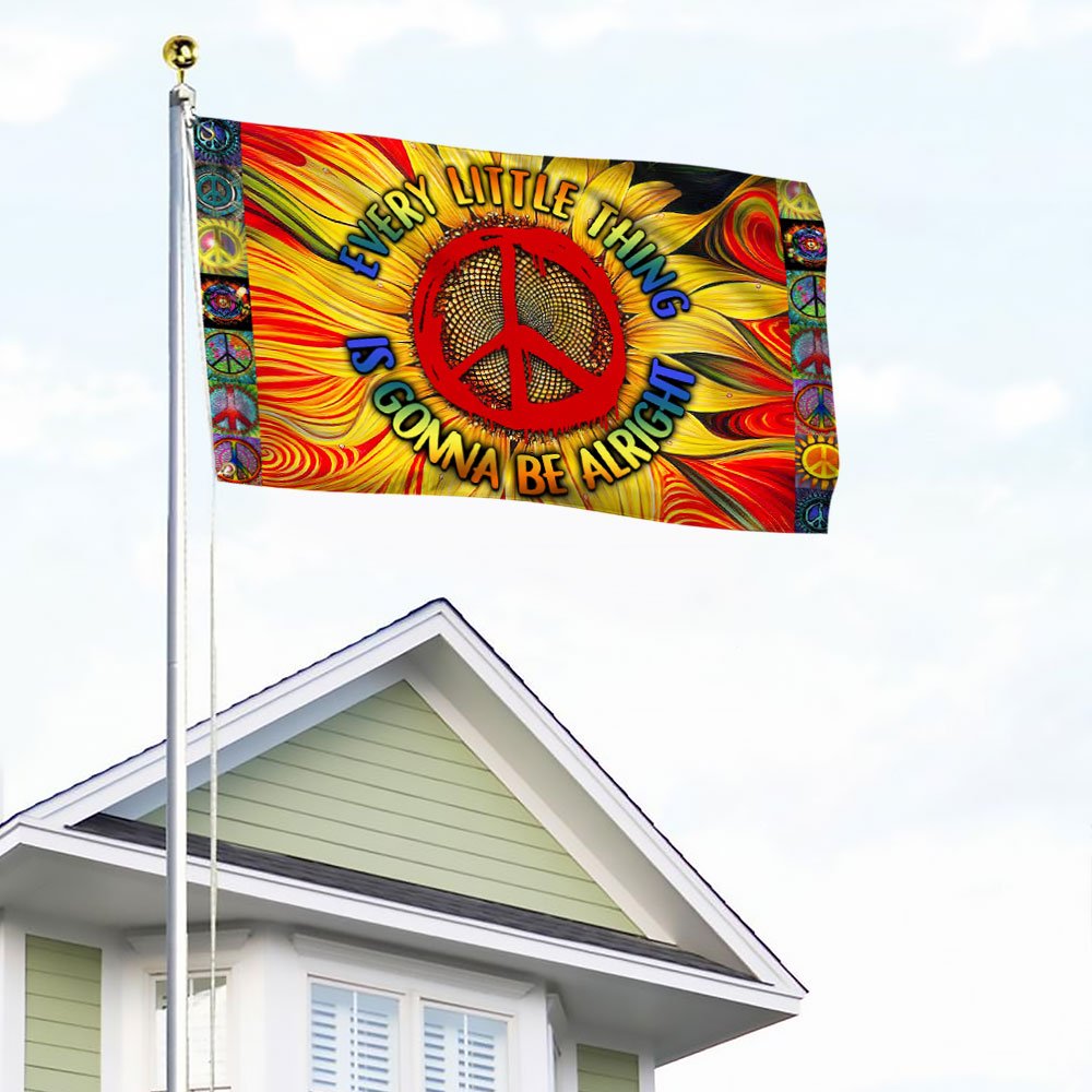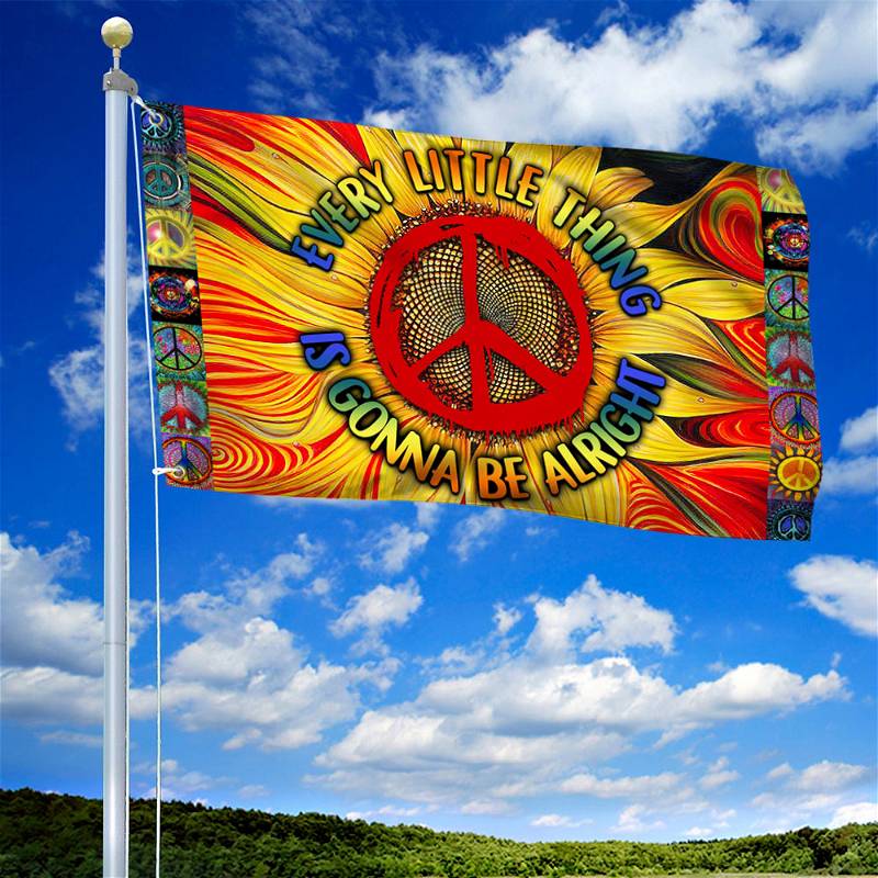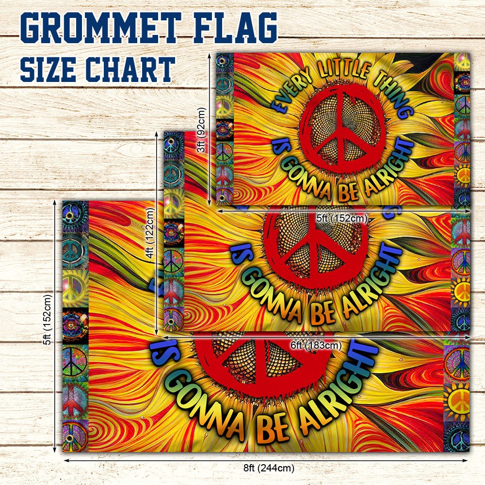 Hippie Peace Sign Every Little Thing Is Gonna Be Alright Sunflower Grommet Flag TPT425GFCT