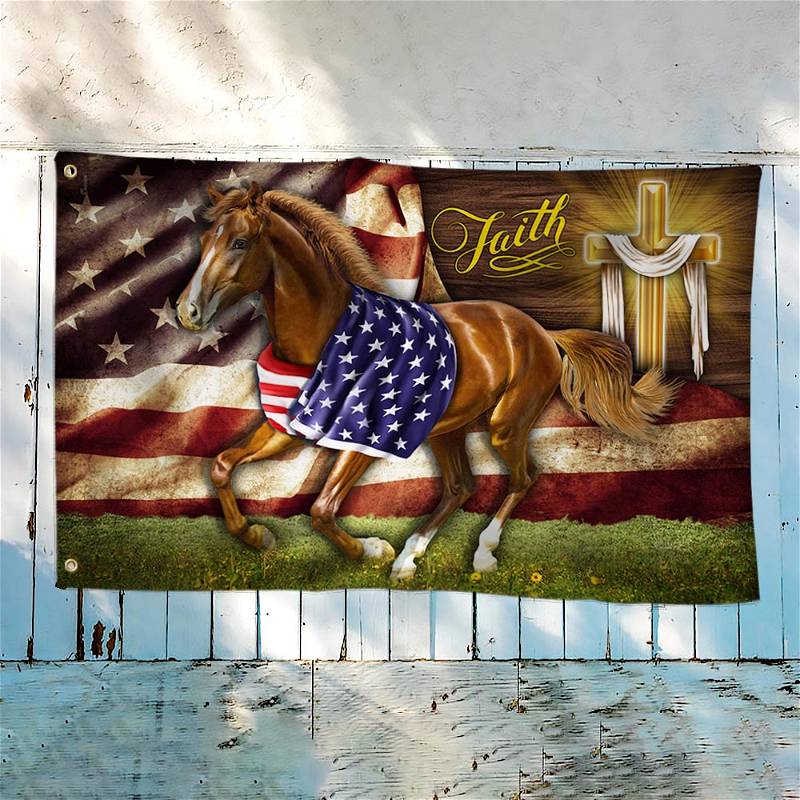 Horse Flag Patriotic Faith Horse American Grommet Flag QTR50GFCT