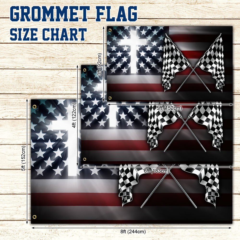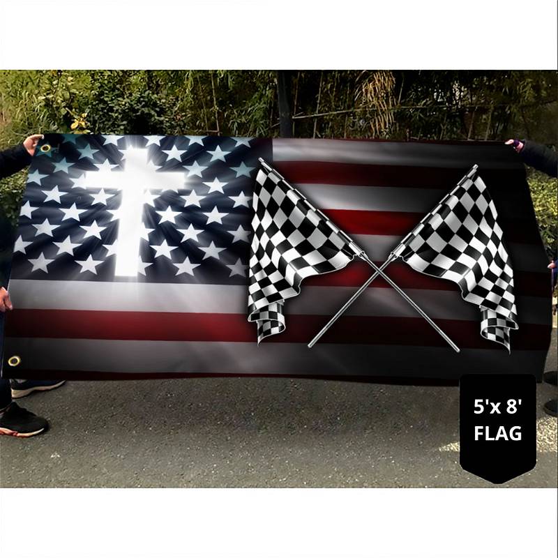 Christian Cross & Racing American Grommet Flag DDH3018GFCT