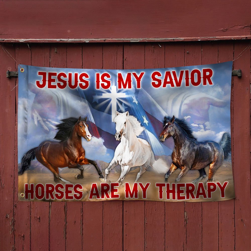 Horses Grommet Flag Jesus Is My Savior Horses Are My Therapy TQN96GFCT