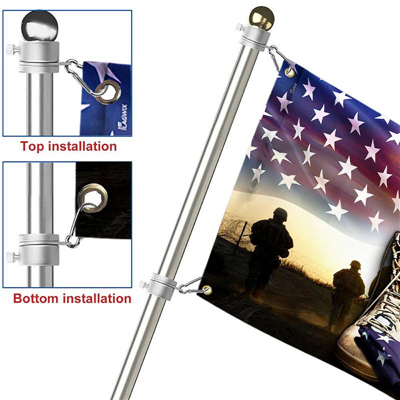- The flag is made of 100% polyester and is equipped with 2 heavy metal grommets. And available with two options: No Flag Pole Rings and With Flag Pole Rings, so it is easy to hang on. You can choose the right hanging method according to your needs.