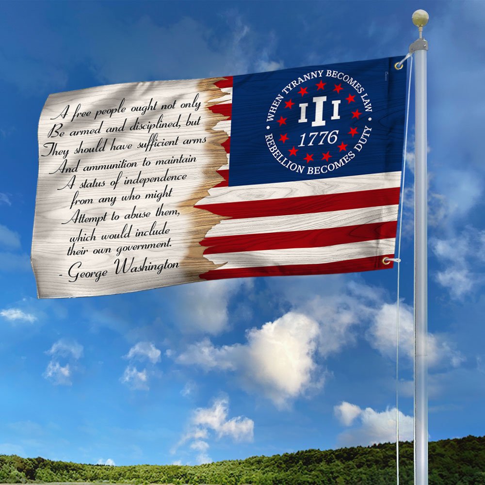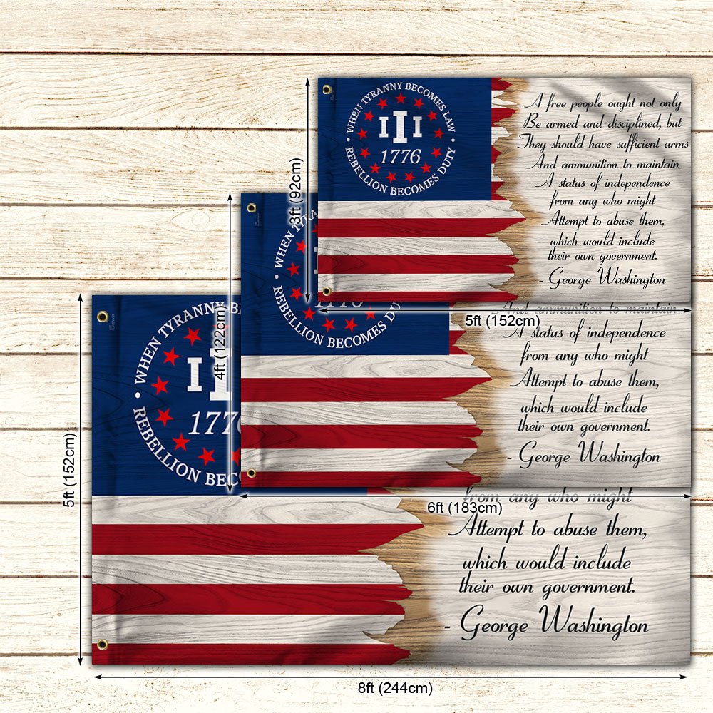 Betsy Ross 1776 2nd Amendment Flag When Tyranny Becomes Law Rebellion Becomes Duty Grommet Flag MLN460GFCT