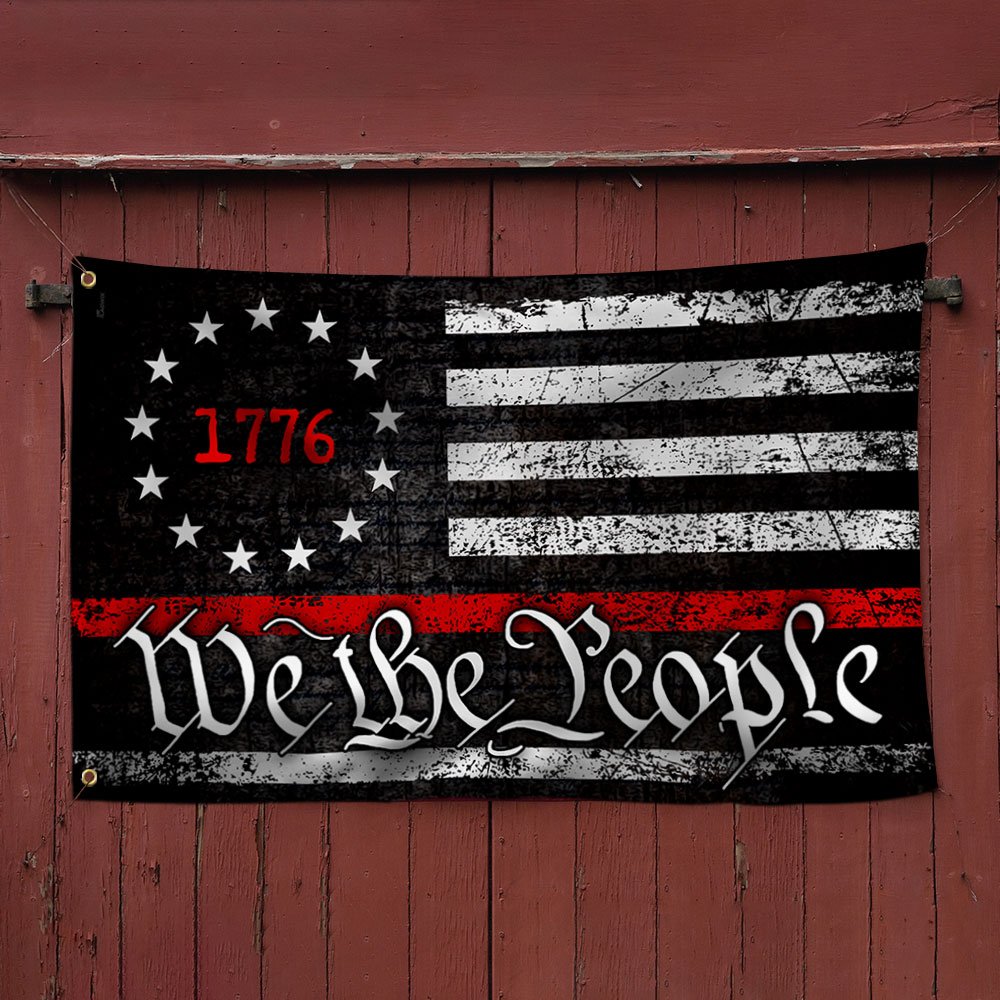 Thin Red Line Firefighter Betsy Ross Grommet Flag QNK852GFv3CT